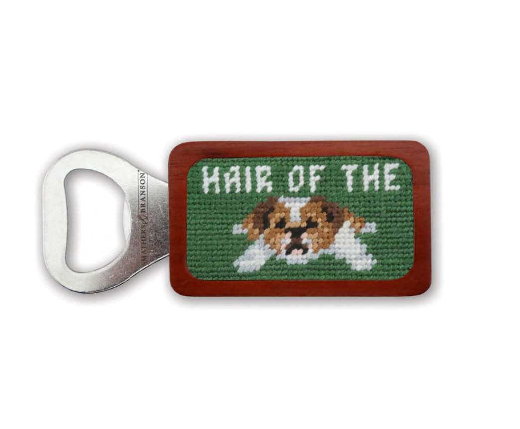 Our 100% hand-stitched bottle openers combine our signature needlepoint with a chestnut colored wooden handle. With a magnet hidden inside the wood, stick our bottle opener on the front of your fridge or show it off on top of your bar!