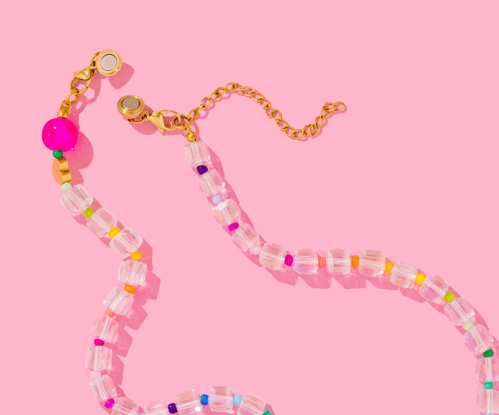 Style our beaded necklaces together for a layered look, or on their own. Pair one with a pair of earrings for a sweet + thoughtful gift! We love that these necklaces have a magnetic closure to easily take it on and off, as well as an extender chain to adjust the length!