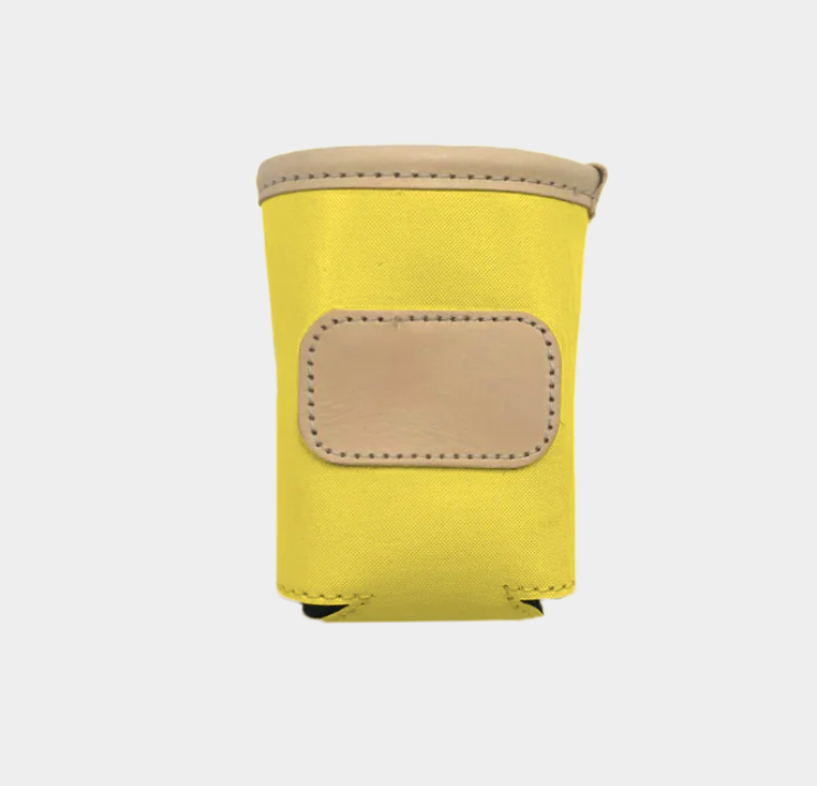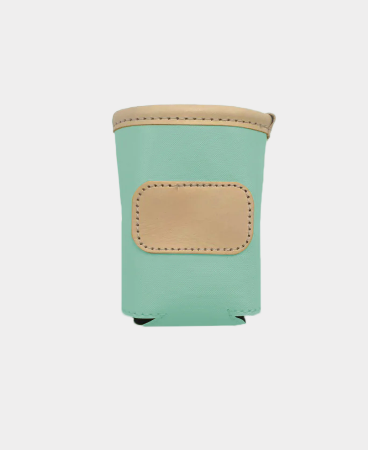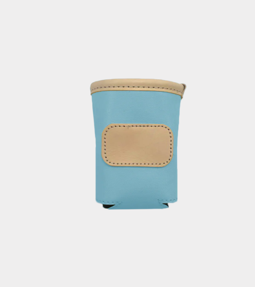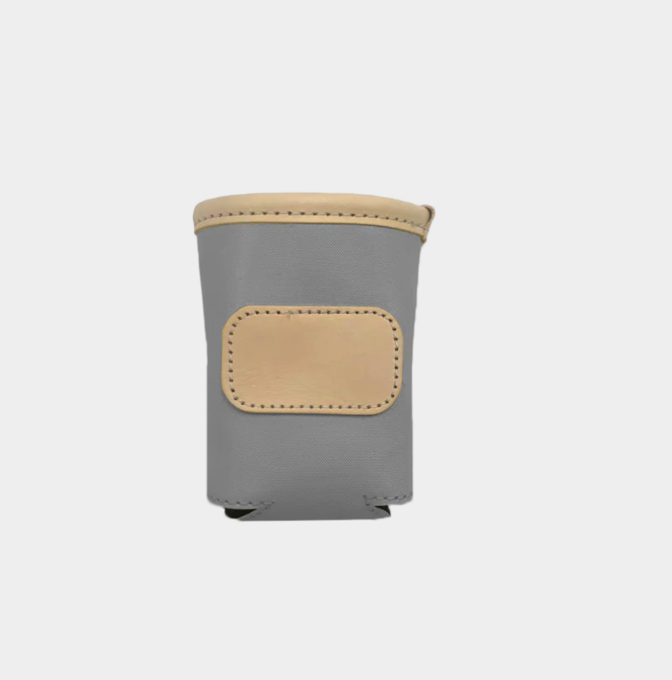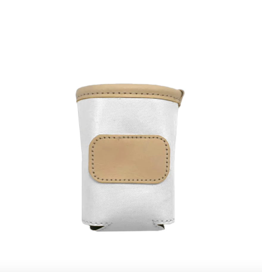 A new design for an old favorite. Keep your drinks cold with this insulated collapsible can cooler. Coated canvas with Natural Leather trim.
