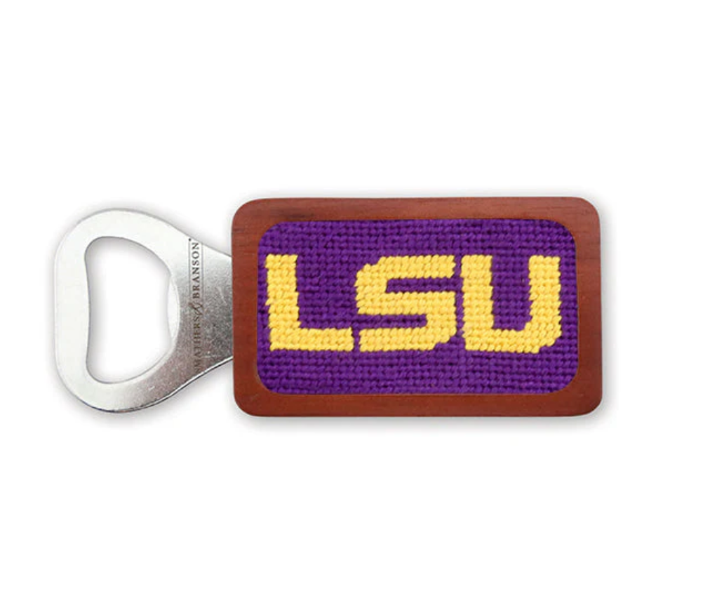 Our 100% hand-stitched bottle openers combine our signature needlepoint with a chestnut colored wooden handle. With a magnet hidden inside the wood, stick our bottle opener on the front of your fridge or show it off on top of your bar!