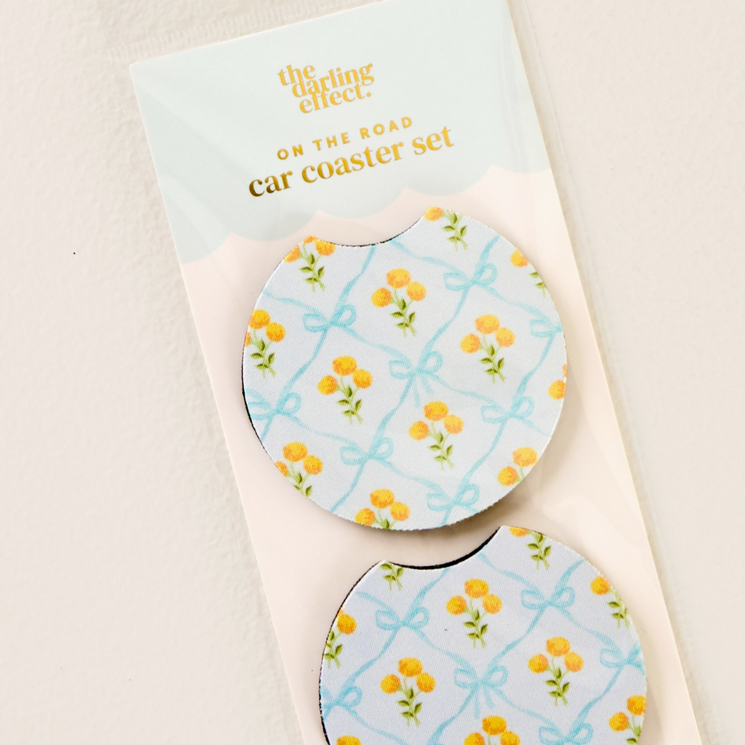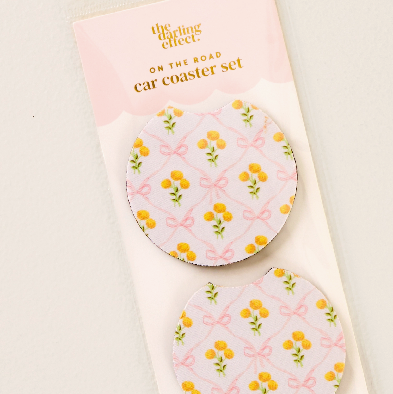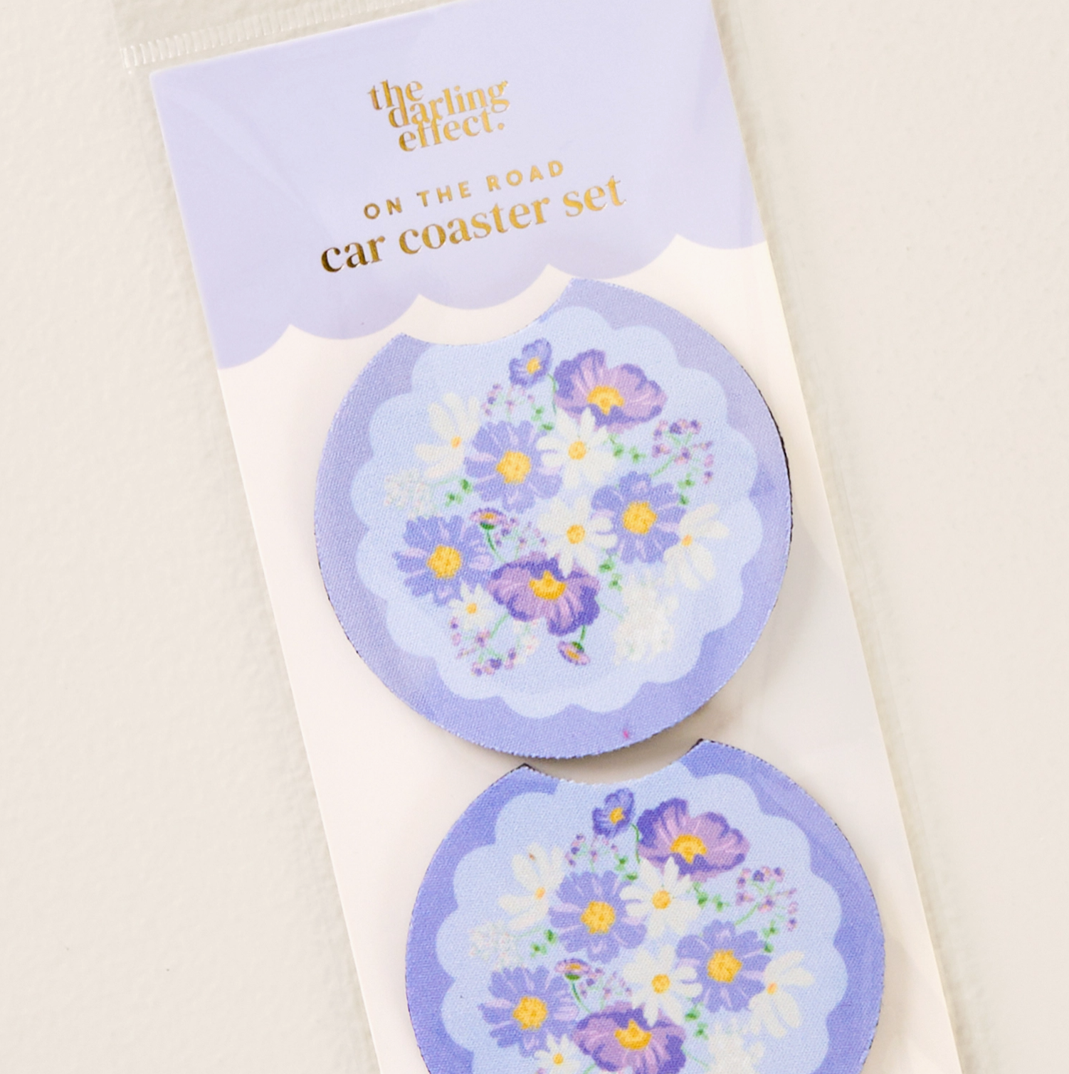 Keep your car clean and dry with our On the Road Car Coaster Set! This set of two matching coasters absorbs moisture to protect your car’s interior from spills and condensation. They’re easy to remove for cleaning and fit most standard cup holders. Packaged in a clear sleeve with a hang tab, they’re a practical and stylish accessory for any car.