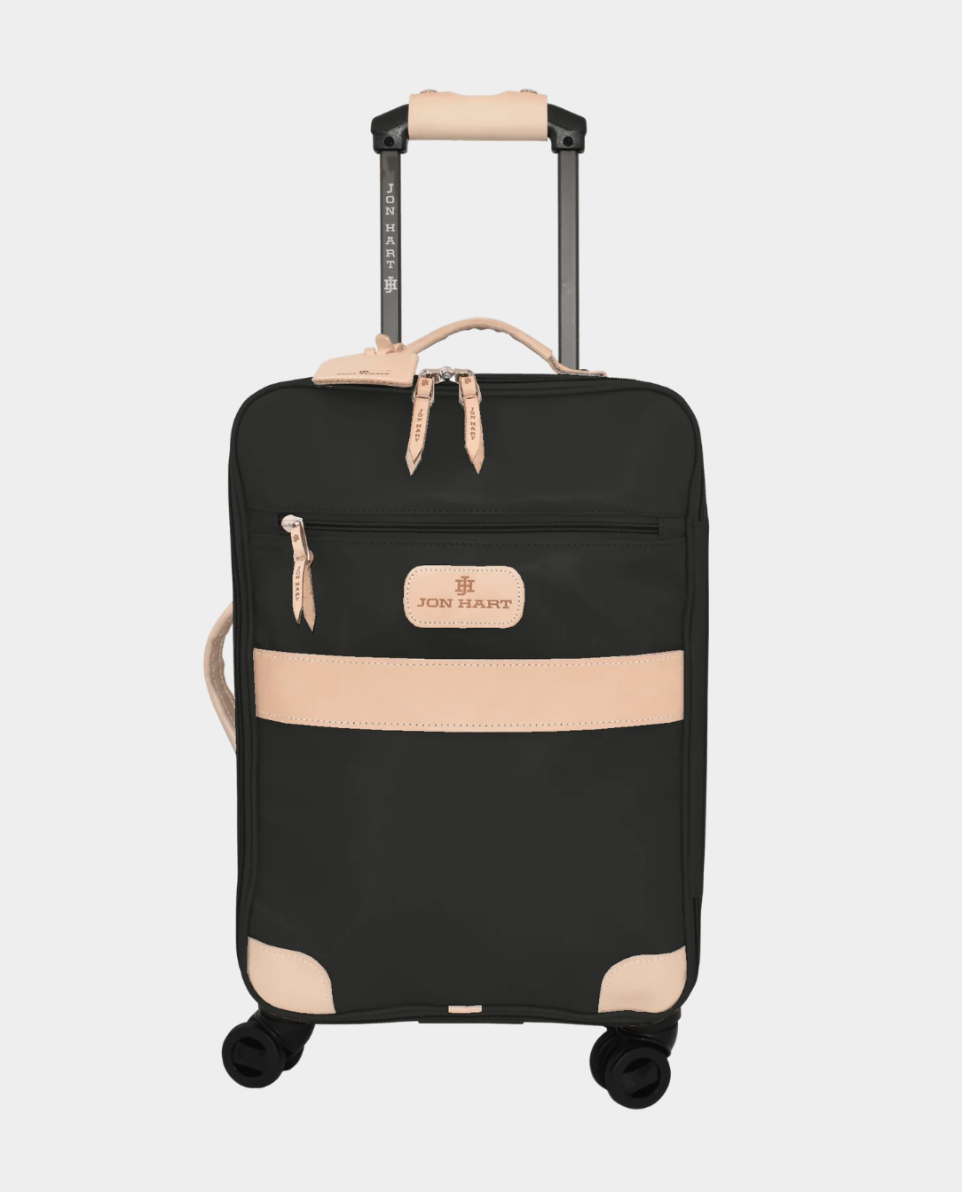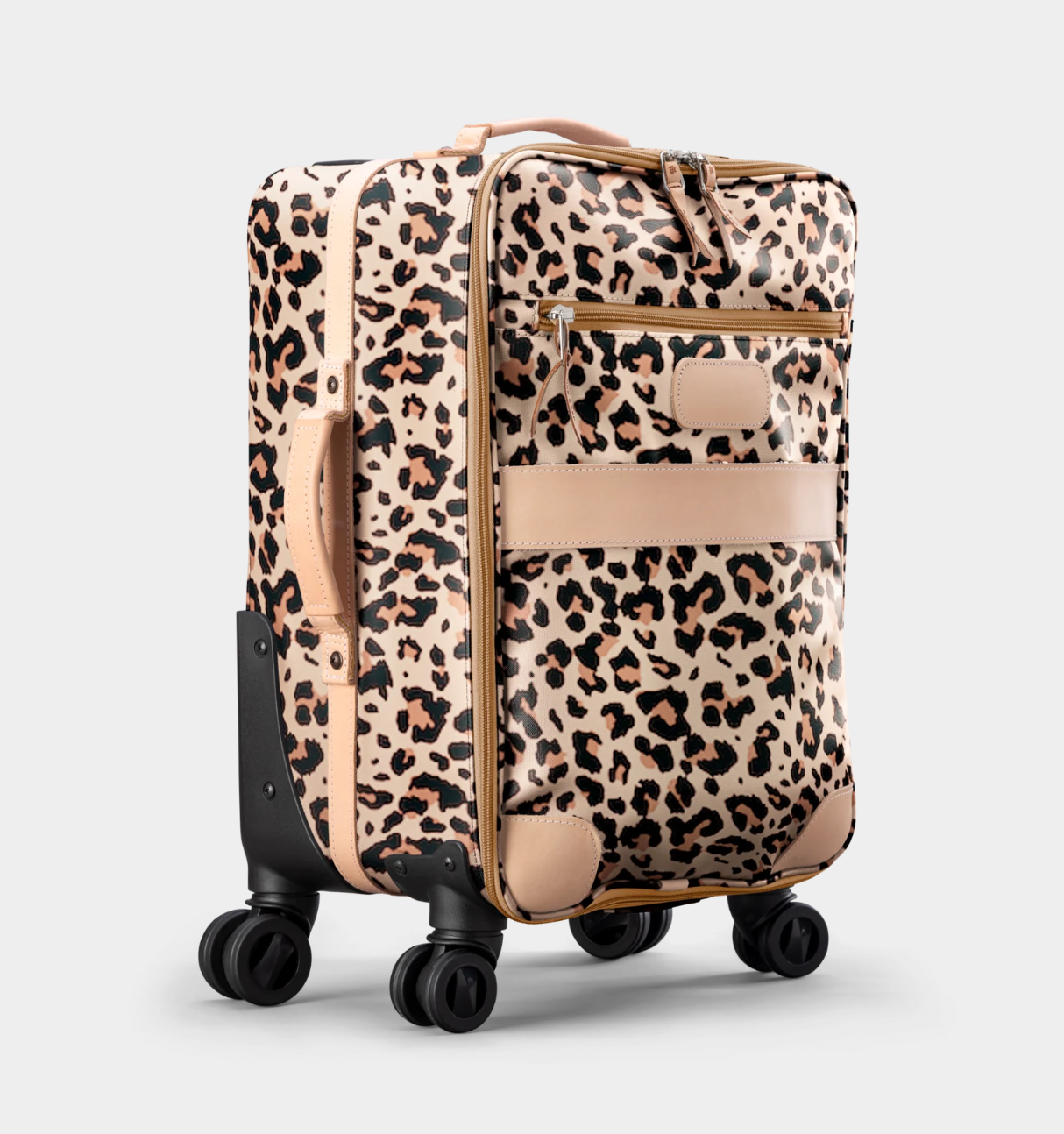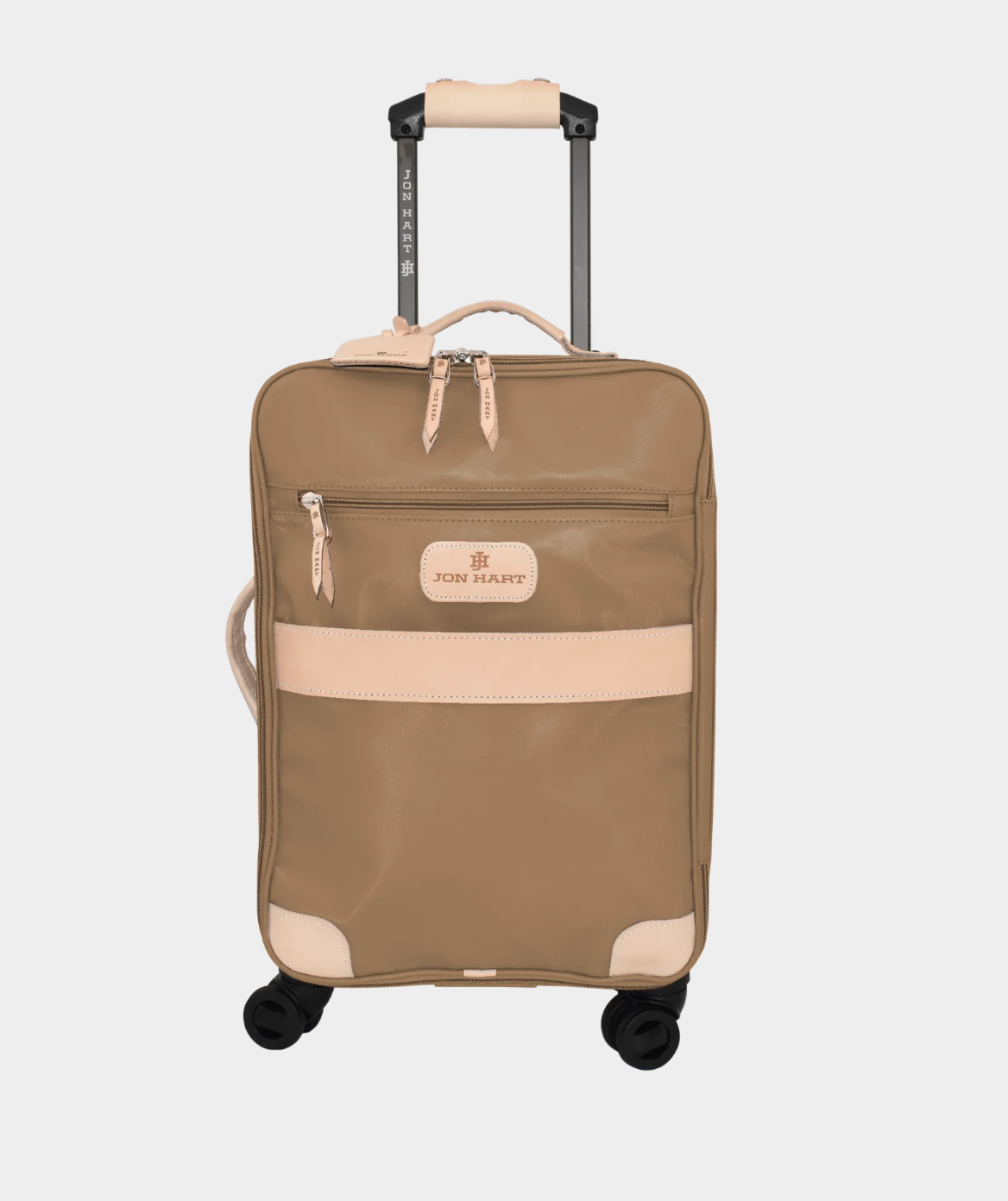 Luggage should never slow you down... although this beauty may stop other people in their tracks. Available in coated canvas with generous amounts of natural leather trim. The front has a zipper pocket as well as a lined sleeve to hold folders, documents and other items that you need to slip in and get out easily. Natural Leather handles on top and side so that you can lift it from the top or side. Retractable comfort grip handle system. The honeycomb internal frame is light weight, strong and durable. 360 degree wheels for easy rolling. Lockable zippers on outside pockets. Carry On Compliant. Includes a Natural Luggage Tag and Handle Wrap.