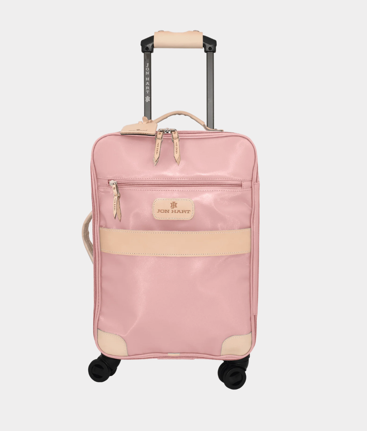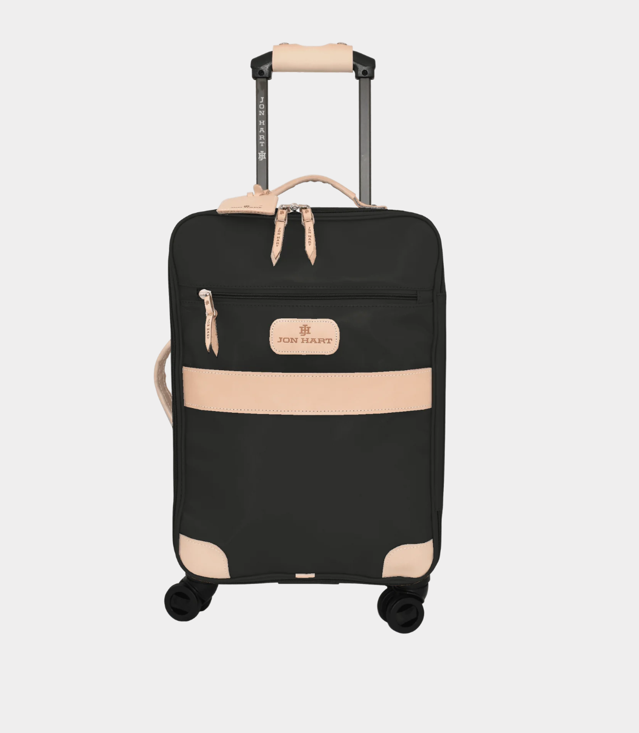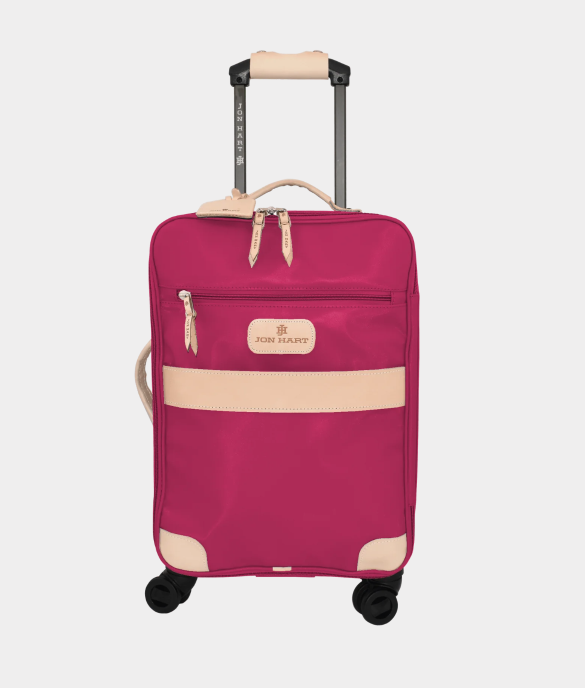 Luggage should never slow you down... although this beauty may stop other people in their tracks. Available in coated canvas with generous amounts of natural leather trim. The front has a zipper pocket as well as a lined sleeve to hold folders, documents and other items that you need to slip in and get out easily. Natural Leather handles on top and side so that you can lift it from the top or side. Retractable comfort grip handle system. The honeycomb internal frame is light weight, strong and durable. 360 degree wheels for easy rolling. Lockable zippers on outside pockets. Carry On Compliant. Includes a Natural Luggage Tag and Handle Wrap.