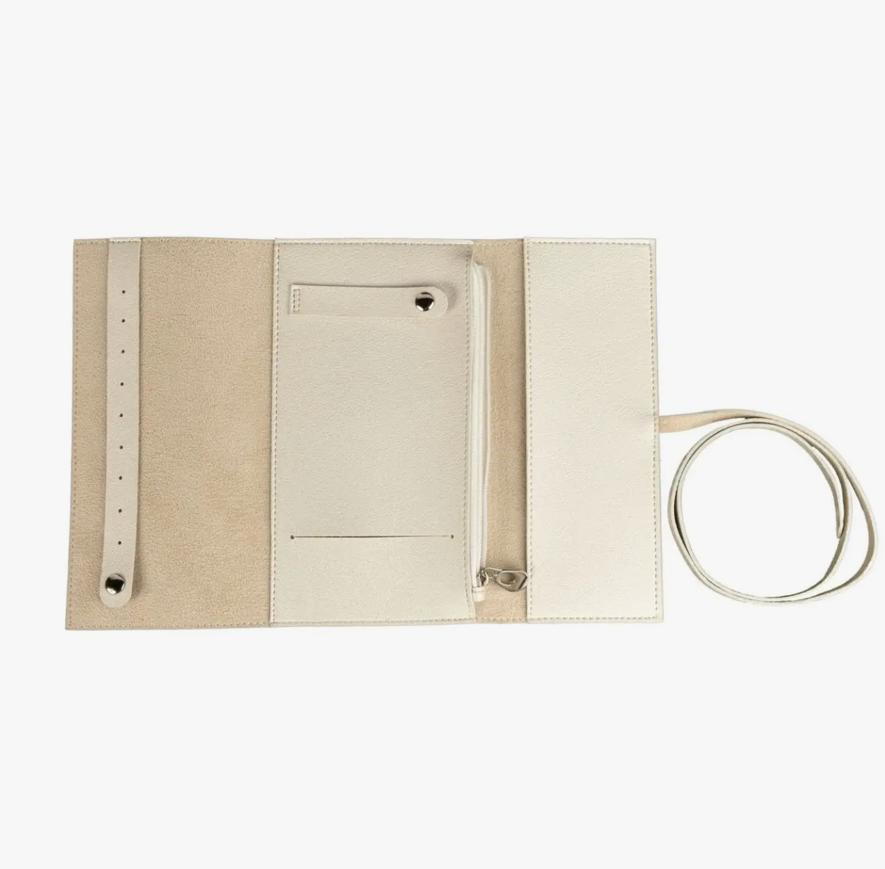 Our Abby Jewelry Roll was thoughtfully designed for the travelers in mind. Designed with multiple pockets, compartments and clips for organizing your jewelry. Simply store all your favorite pieces, roll up, and secure with a tie for an easy smart way to keep your jewelry safe and untangled while you travel.