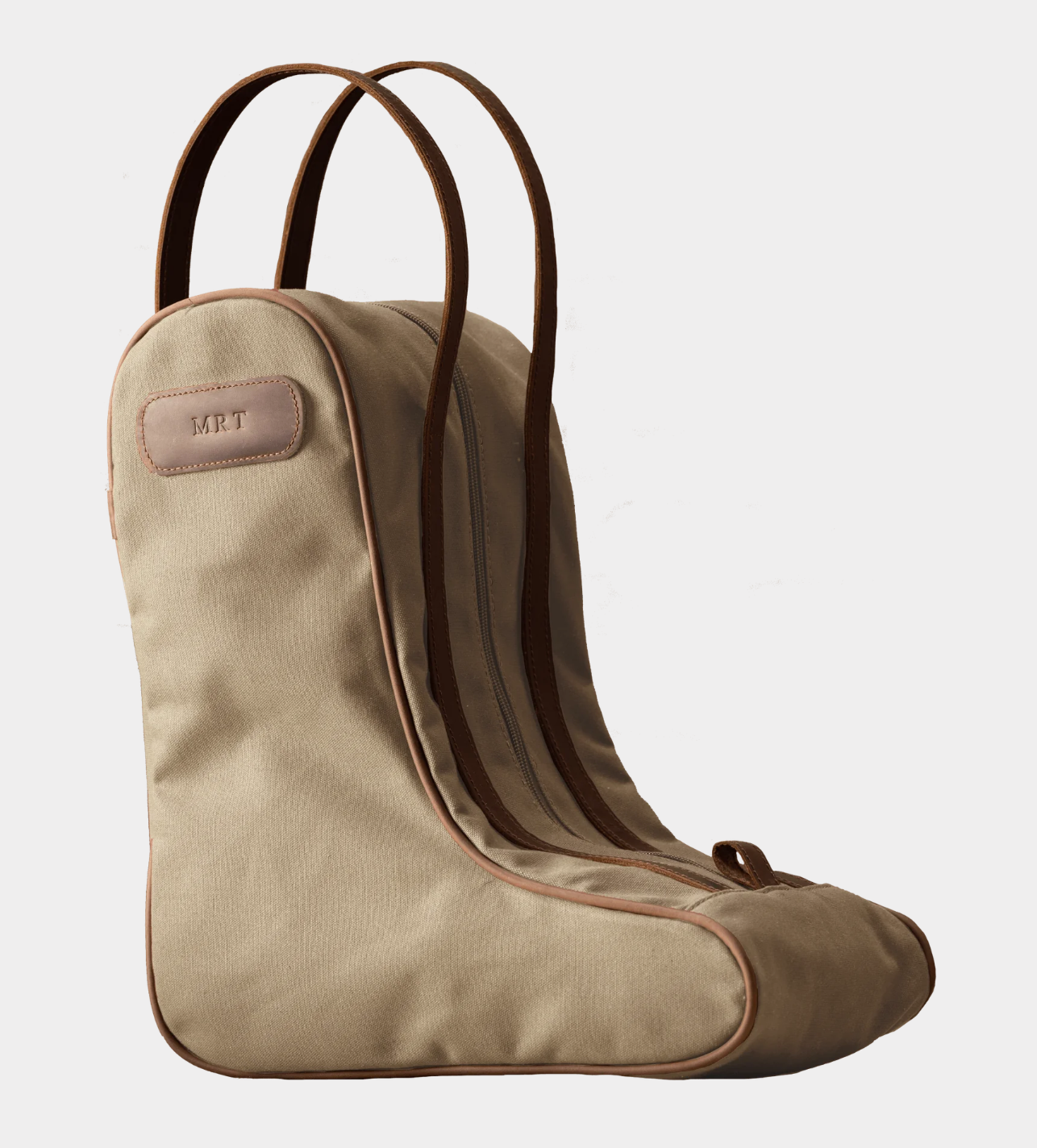 The JH Boot Bag is the ultimate solution for storing & transporting your favorite boots. Designed with convenience in mind, this boot bag features a spacious main compartment that comfortably fits a pair of boots up to a size 14. Cotton Canvas with Oiled Leather trim. Also comes in Coated Canvas