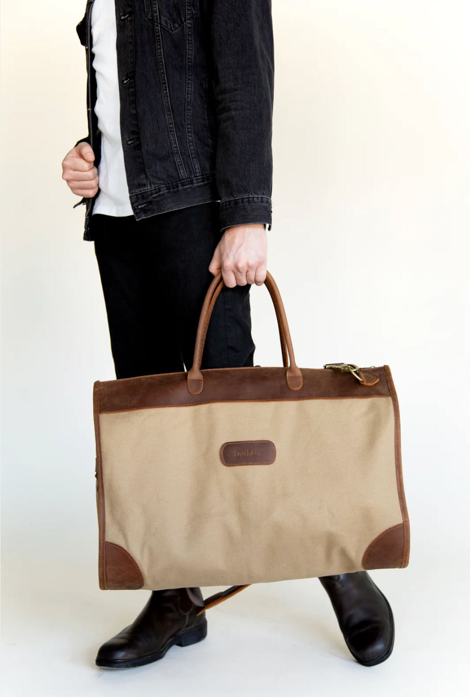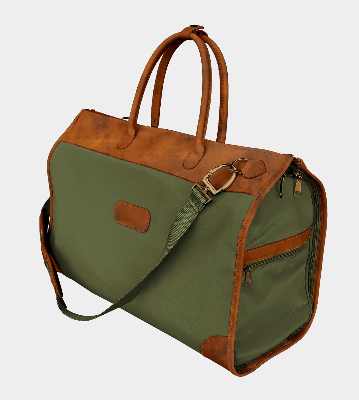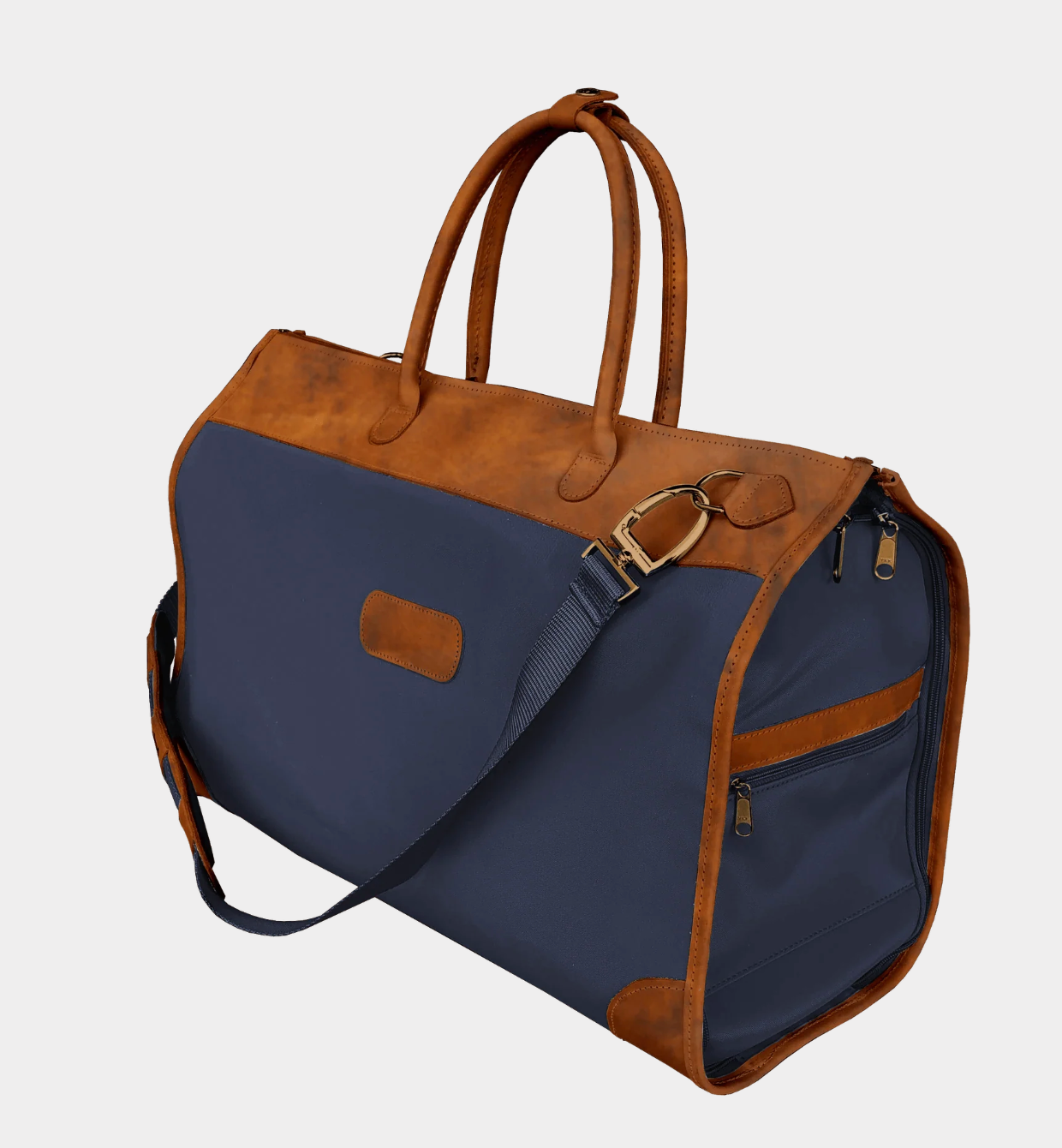 The JH Southtown is a must-have for all travelers looking for a more rustic look. Marked by the classic JH Oiled Leather & Cotton Canvas combination, this bag is fully lined to protect all of your belongings while on the go. This stylish carry-on compliant duffel bag fully unzips to convert into a hanging garment bag, and folds completely flat when being stored. Includes rolled oiled leather handles, as well as an adjustable shoulder strap for comfort carry. Contains zippered exterior pockets on both ends & elastic interior pockets for shoes, socks, or undergarments. Includes zippered exterior pockets on the back of the bag that double as a trolley sleeve. Comfortably fits up to 5 hanging garments in the garment sleeve Comes with a removable hook for easy storing over any door.