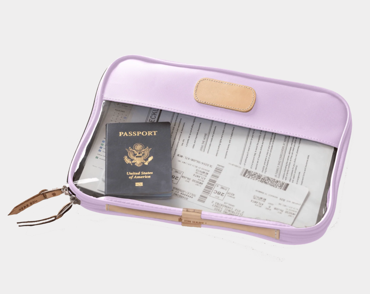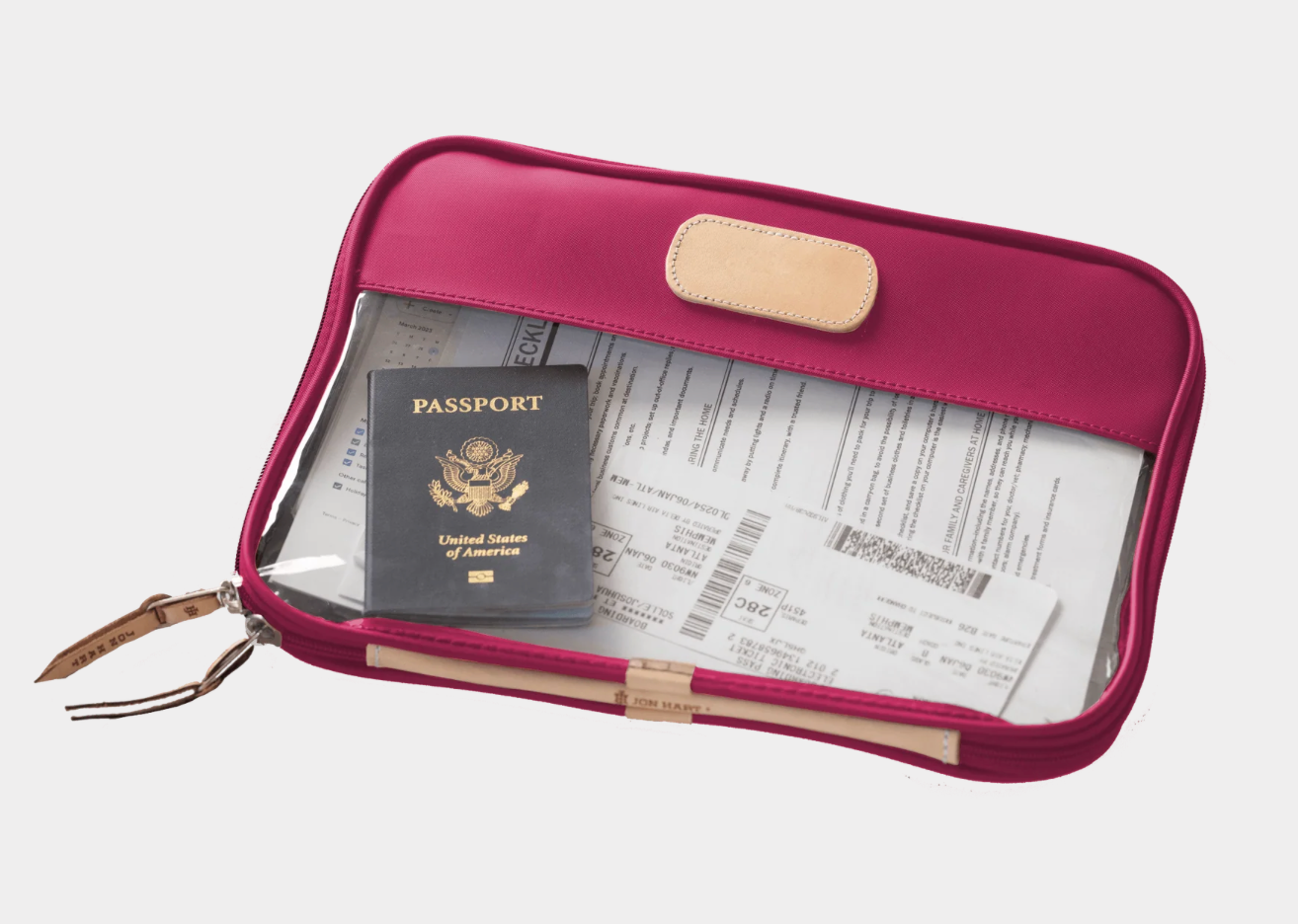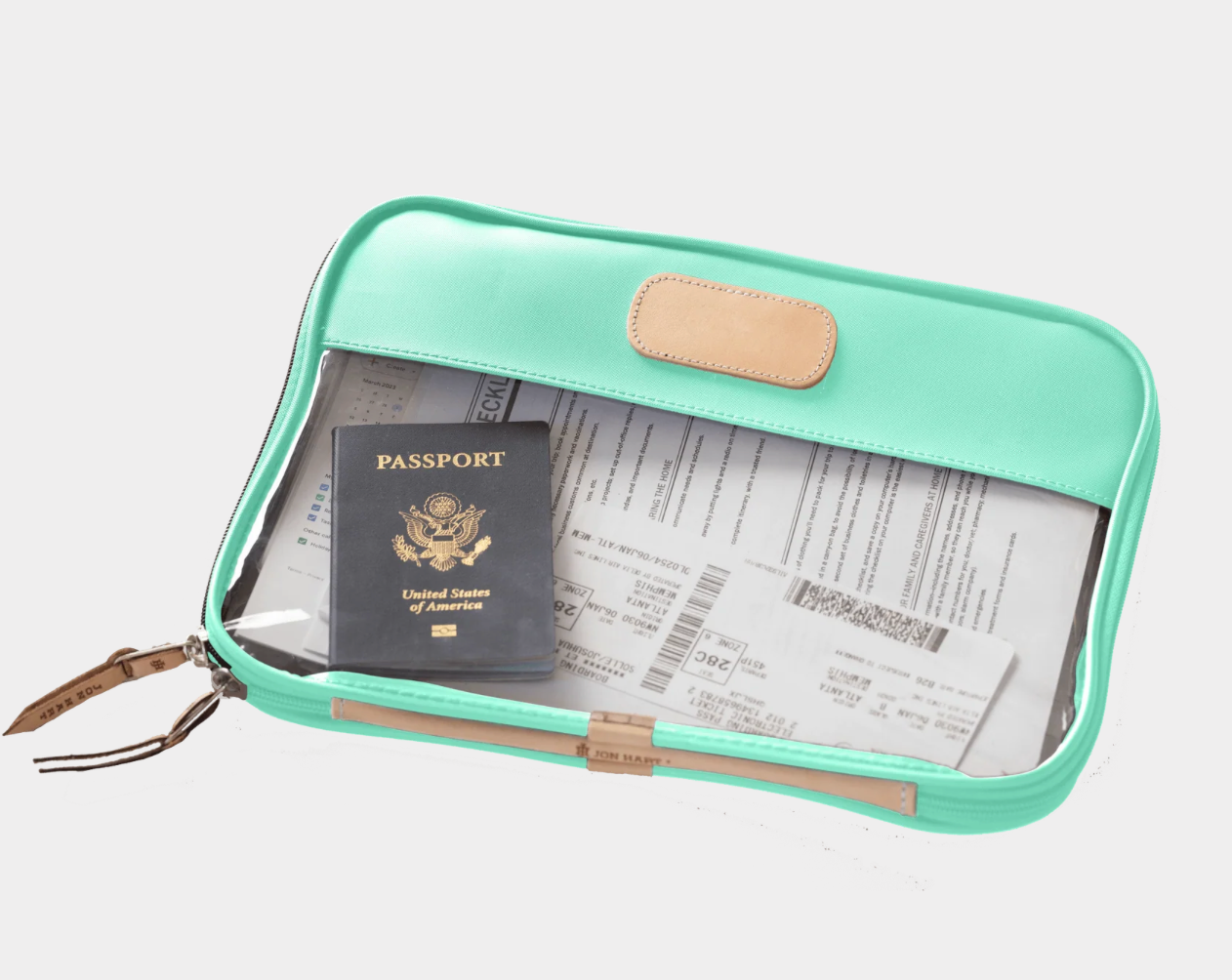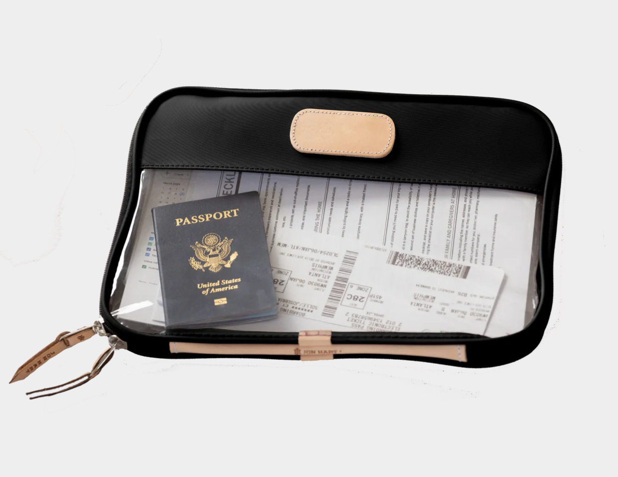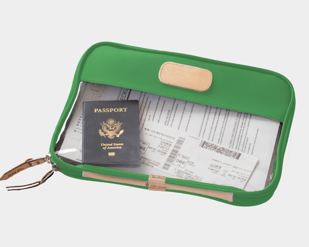 Leave your worries behind & your stress in the folio. The Clear Foilo keeps you organized at work, while traveling and even just around the house! It keeps full sized papers, notebooks, important documents and so much more protected and organized. Also comes in Colored Leather & the JH Cotton Canvas.