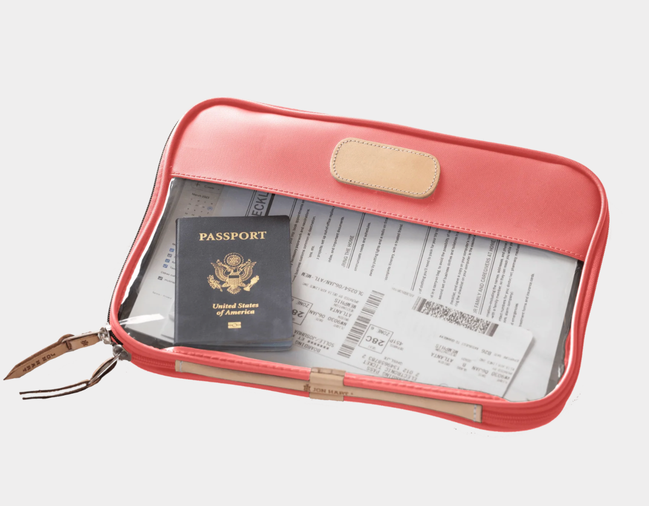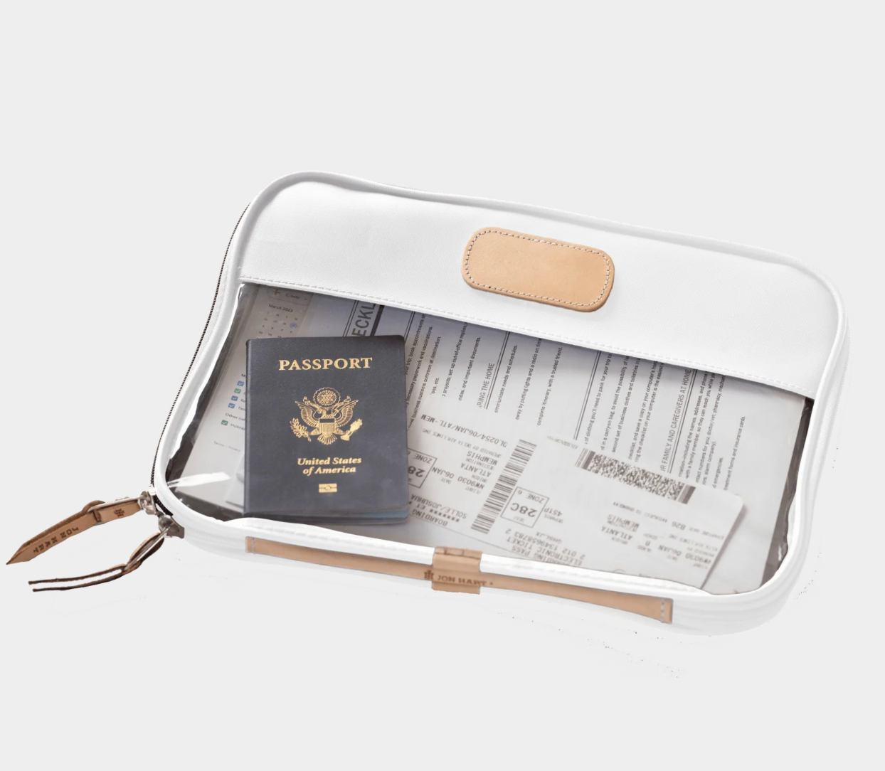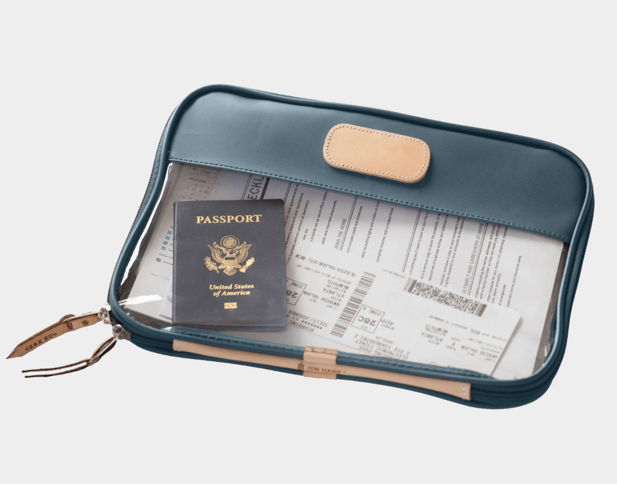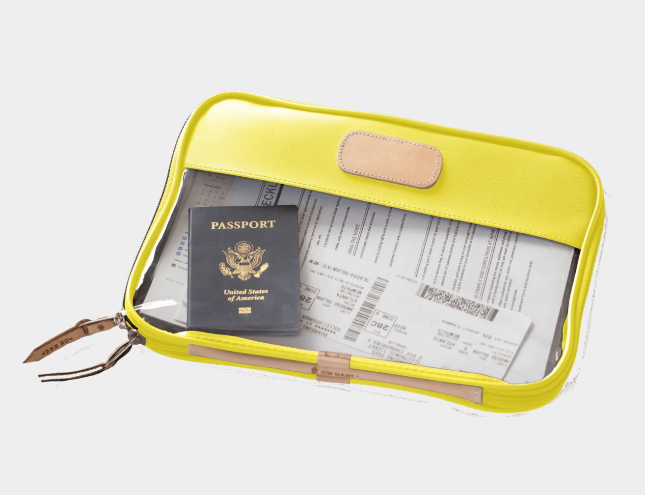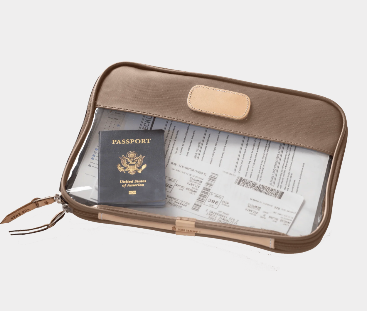 Leave your worries behind & your stress in the folio. The Clear Foilo keeps you organized at work, while traveling and even just around the house! It keeps full sized papers, notebooks, important documents and so much more protected and organized. Also comes in Colored Leather & the JH Cotton Canvas.