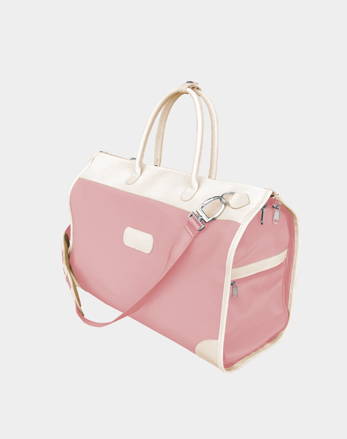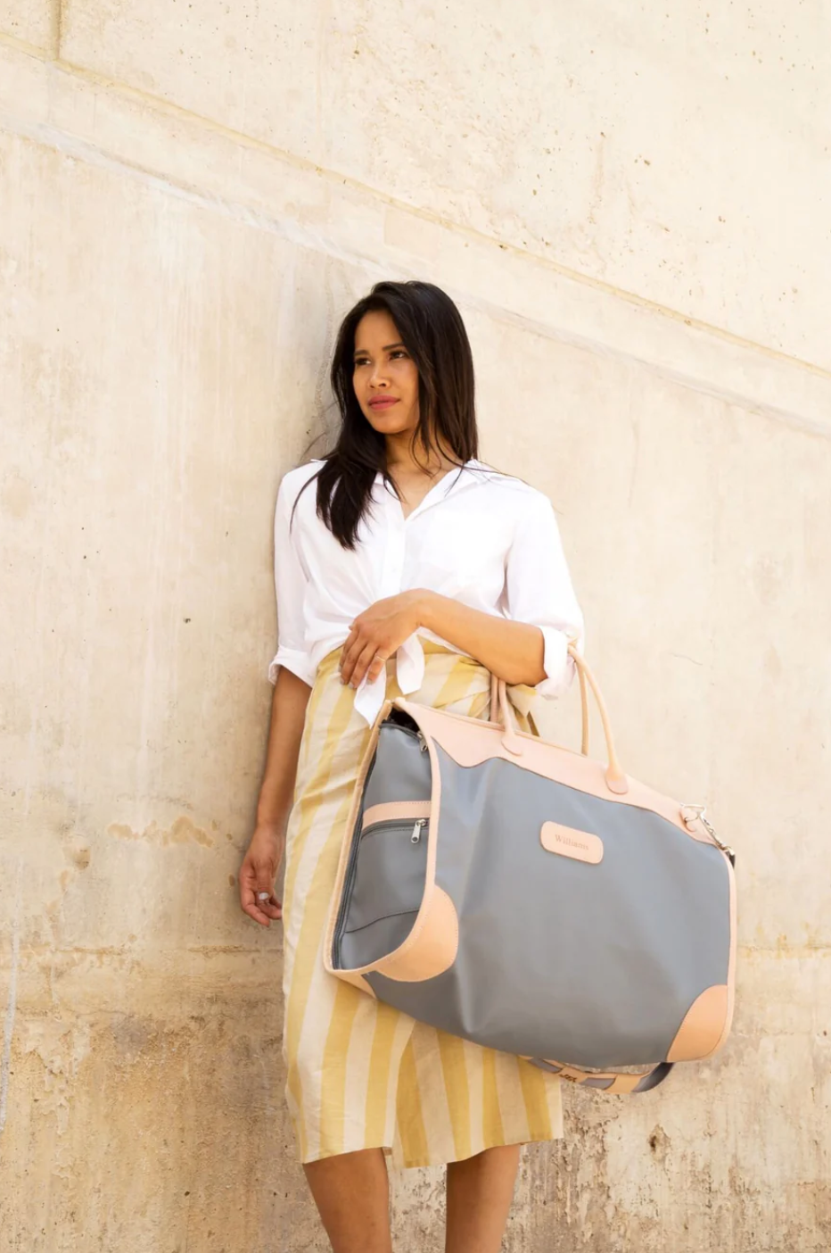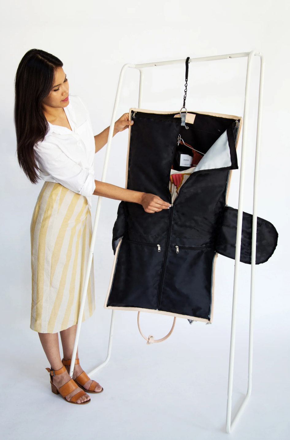 Our must-have for travelers, this stylish carry-on compliant duffel bag fully unzips to convert into a hanging garment bag. Includes rolled leather handles, as well as an adjustable shoulder strap for comfort carry. Zippered exterior pockets on both ends & elastic interior pockets for shoes, socks, or undergarments. The zippered exterior pockets on the back of the bag double as a trolley sleeve. Comfortably fits up to 5 hanging garments in the garment sleeve. Comes with a removable hook for easy storing over any door. An elegant duffel bag when you need to carry it, a garment bag when you need to hang it, and folds completely flat when you need to stow it, the Southtown has plenty of room for all of your weekend essentials.