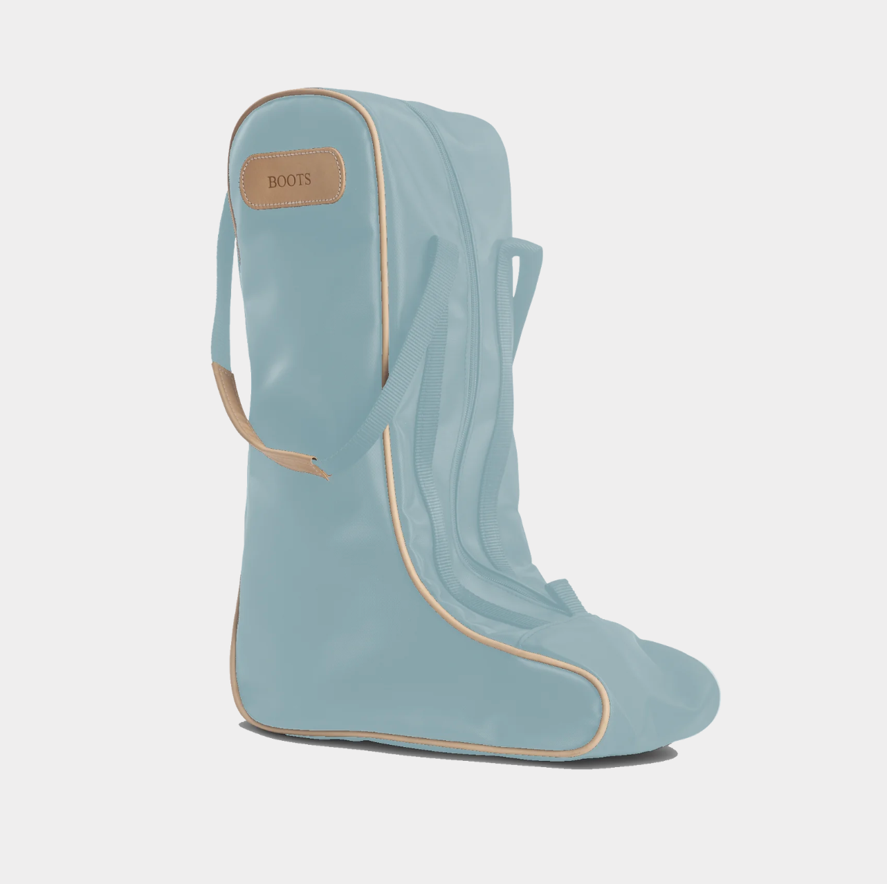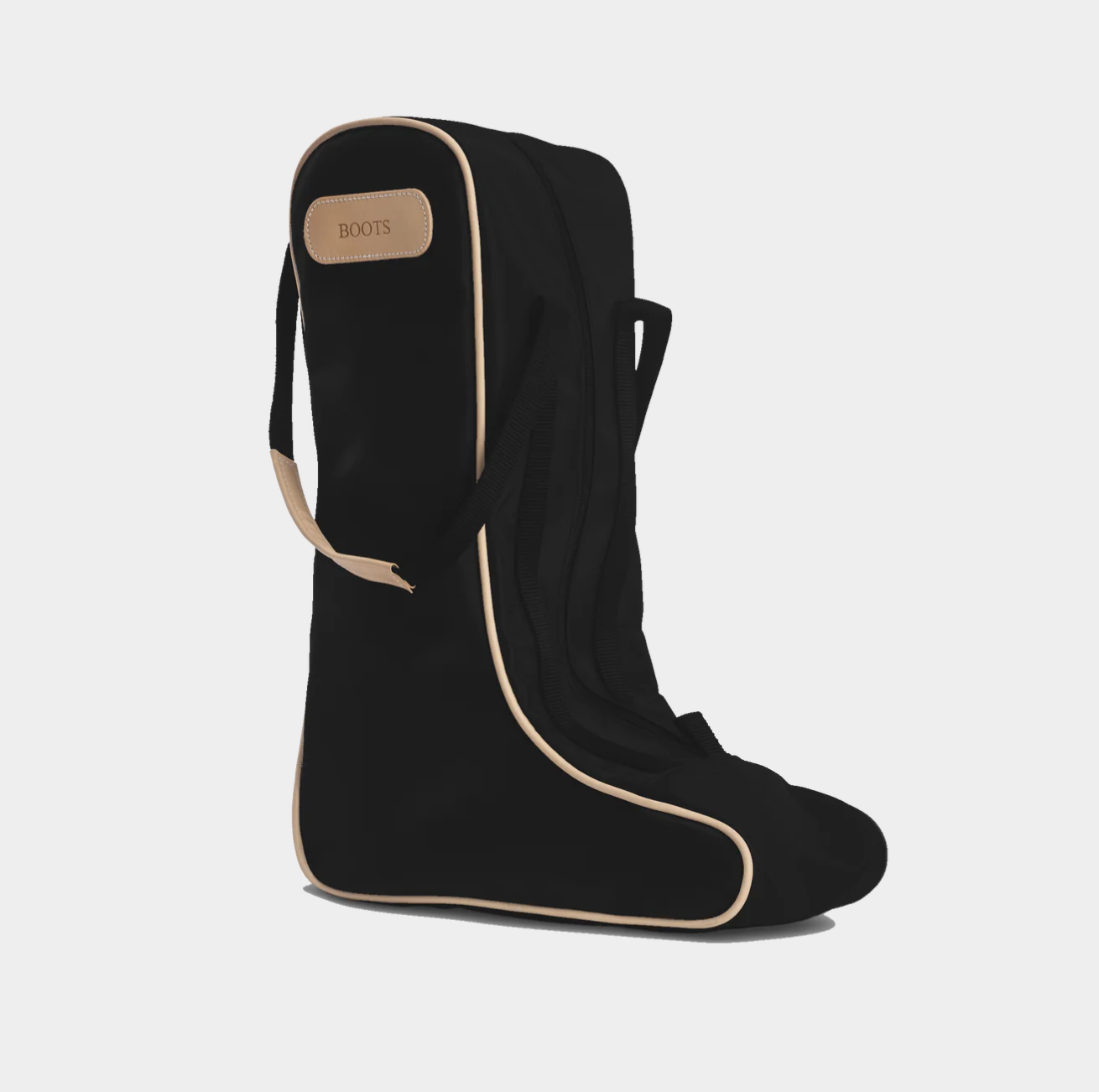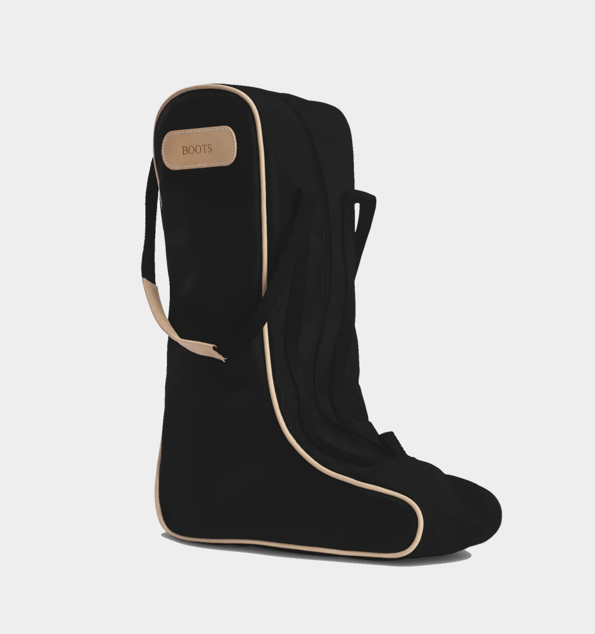 Coated canvas with Natural Leather trim. Holds up to a size 14 boot.