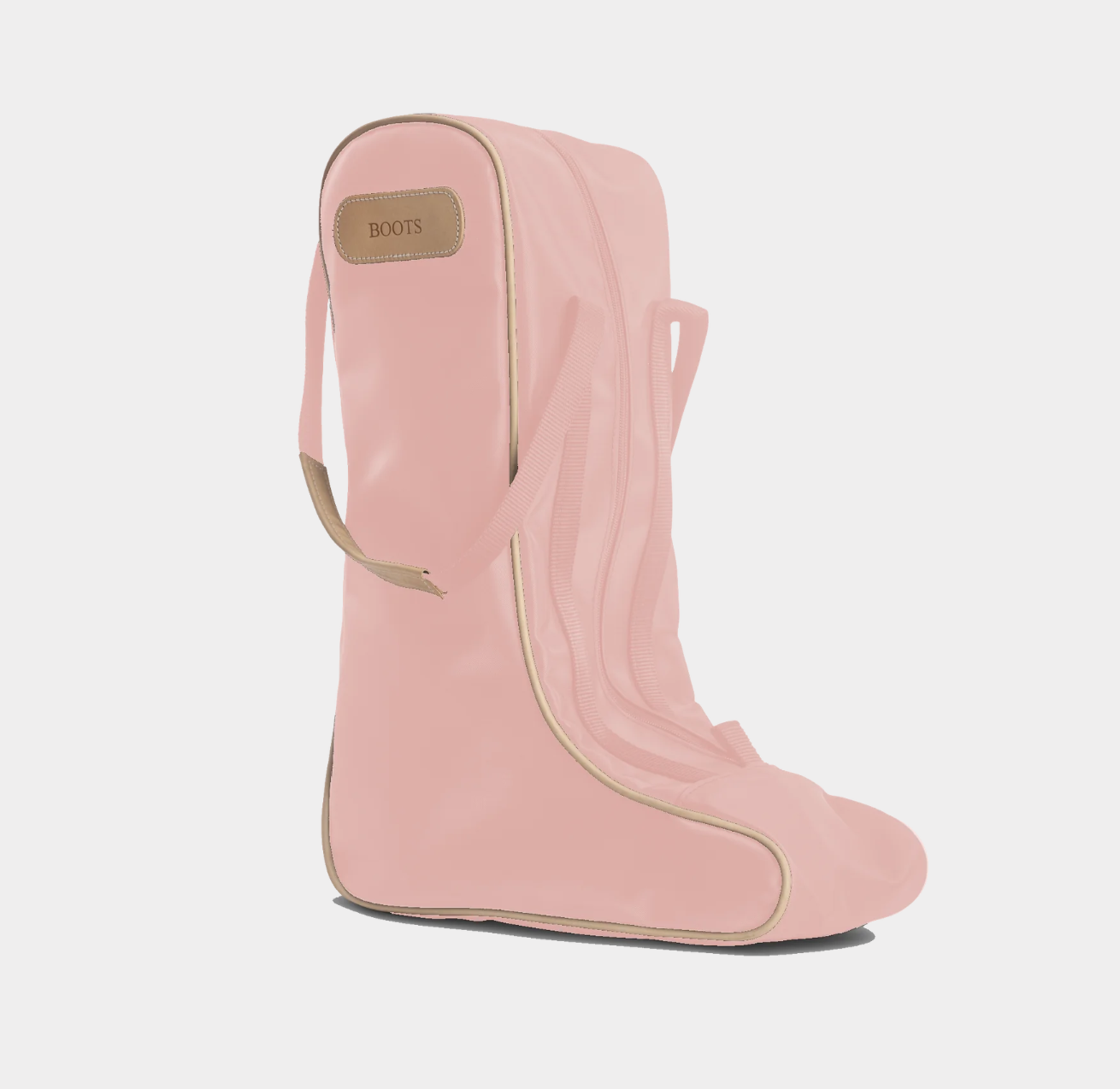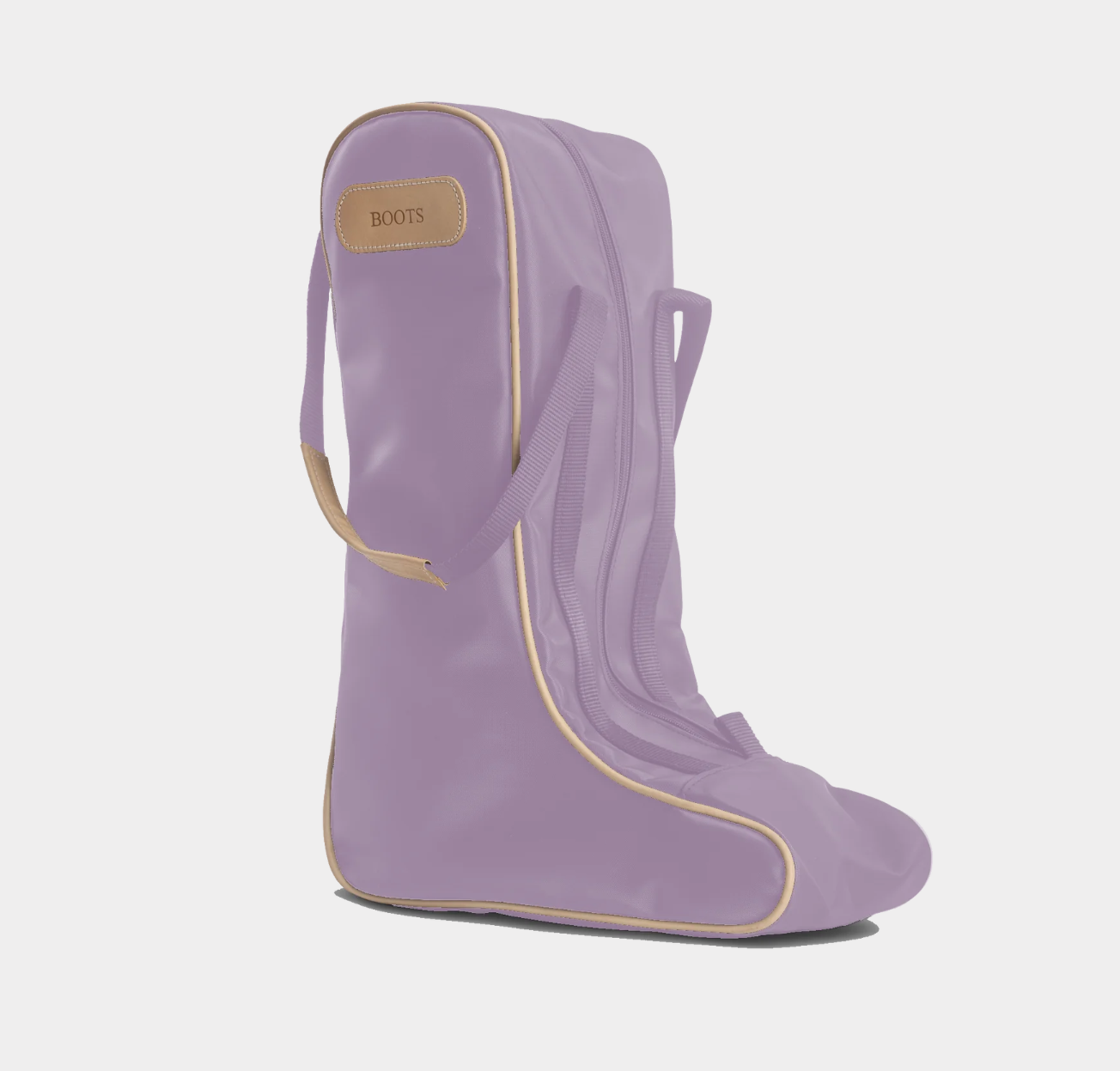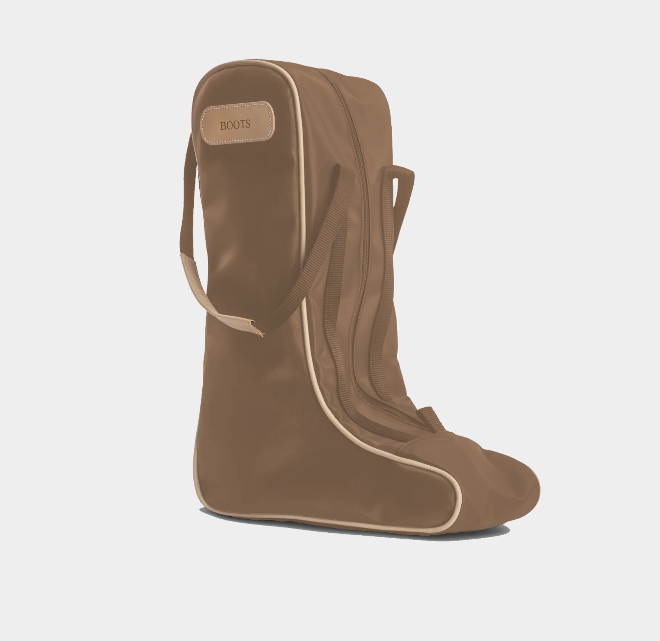 Coated canvas with Natural Leather trim. Holds up to a size 14 boot.