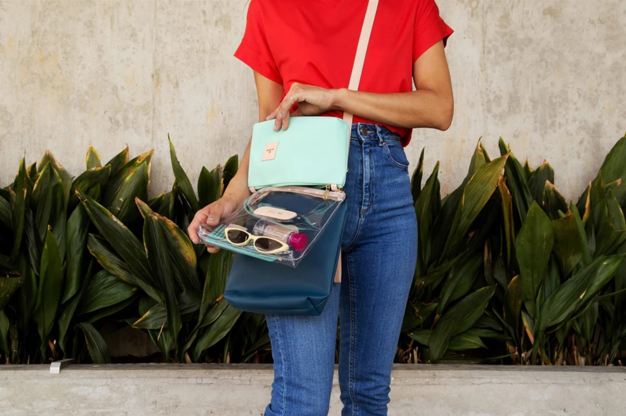 Use the wristlet to carry the small bag for a night on the town. Use the crossbody strap with just the clear bag for the big game. Or pair all 3 bags together for a unique look & extra storage.