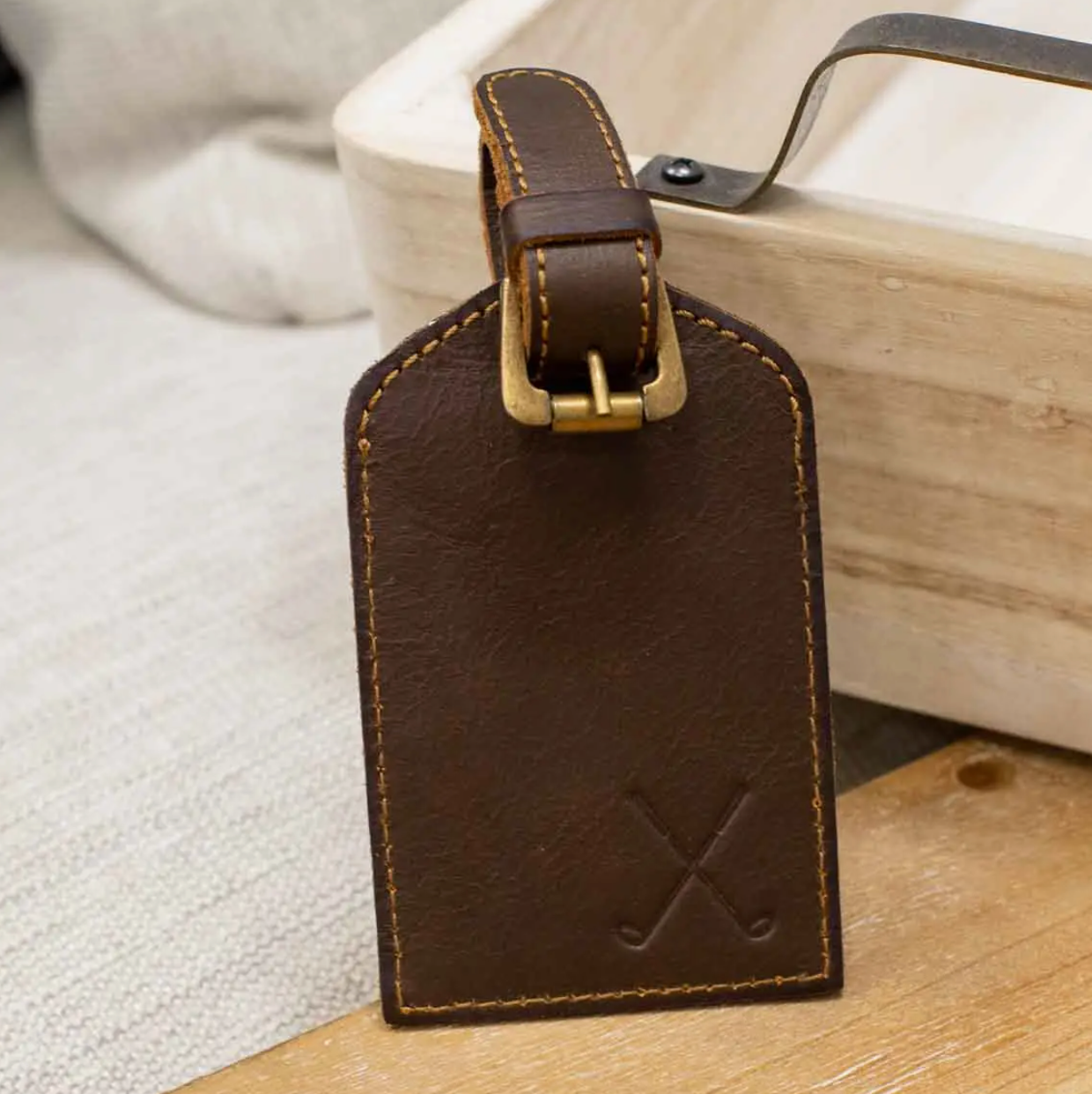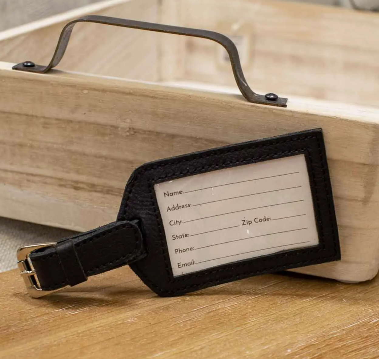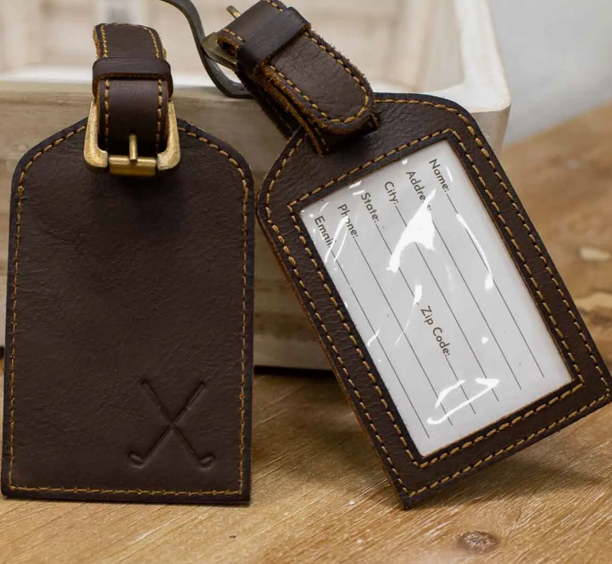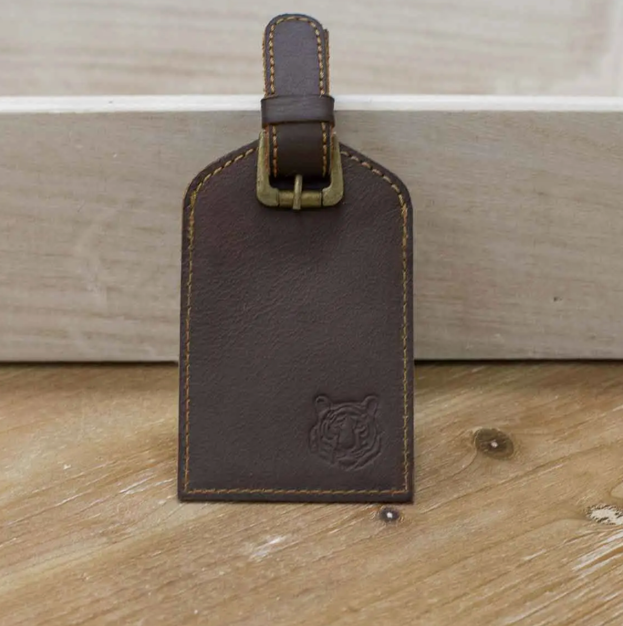 Leather Embossed Luggage Tag Dark Brown 3x4.75