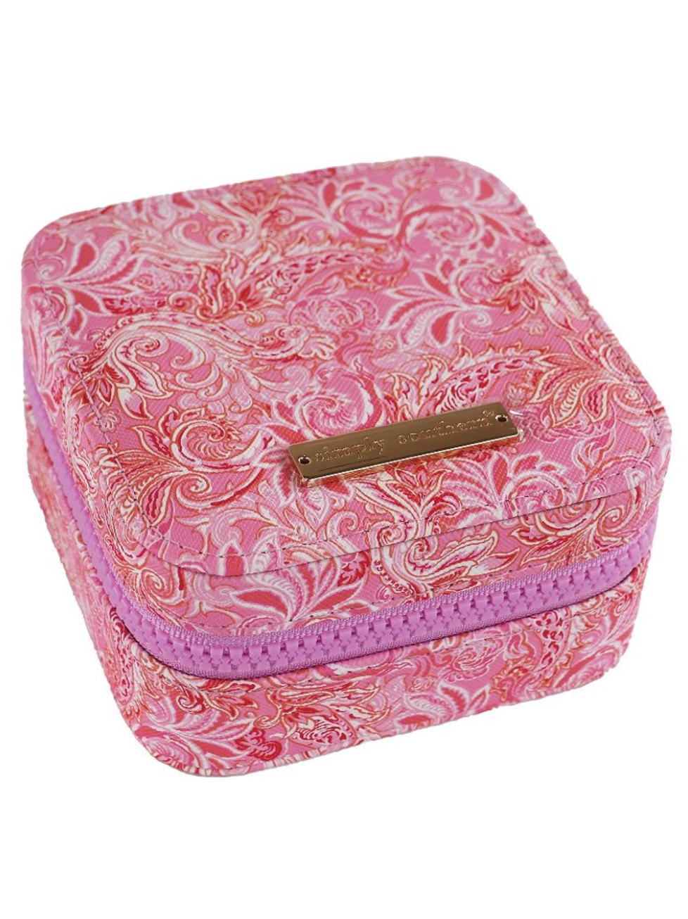 This jewelry box is the perfect place to store your jewelry at home or throw in a suitcase for travel. Featuring soft interior, ring, earring, and necklace storage with an interior mirror, gold hardware and Simply Southern logo. Made of 60% PVC 40% polyester.