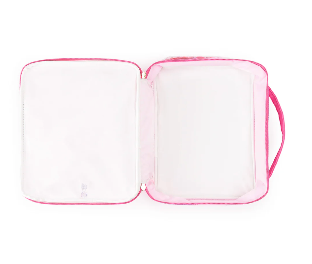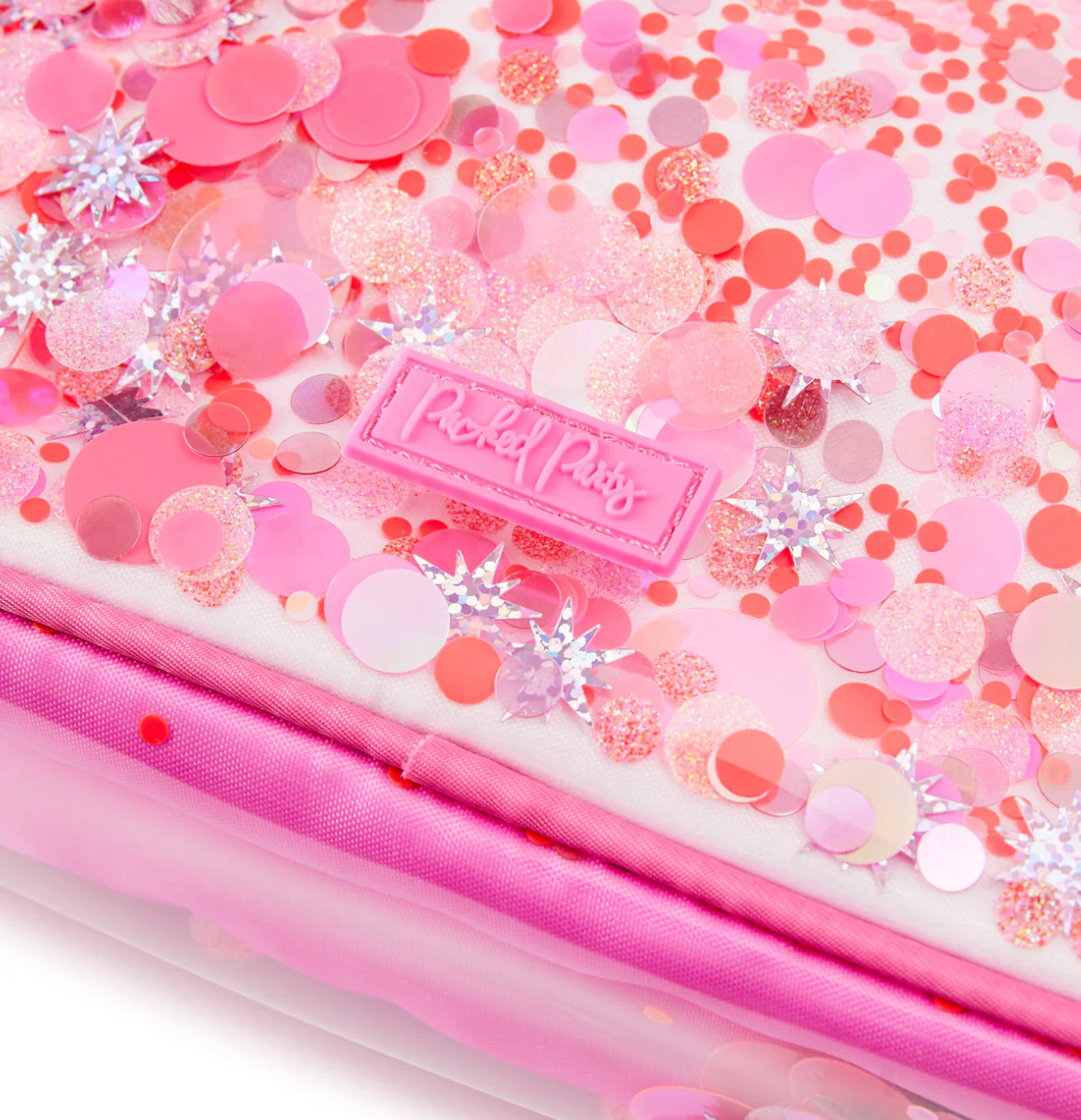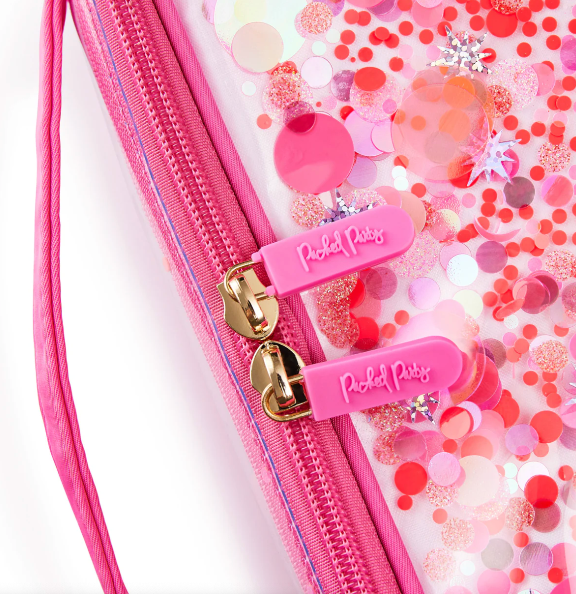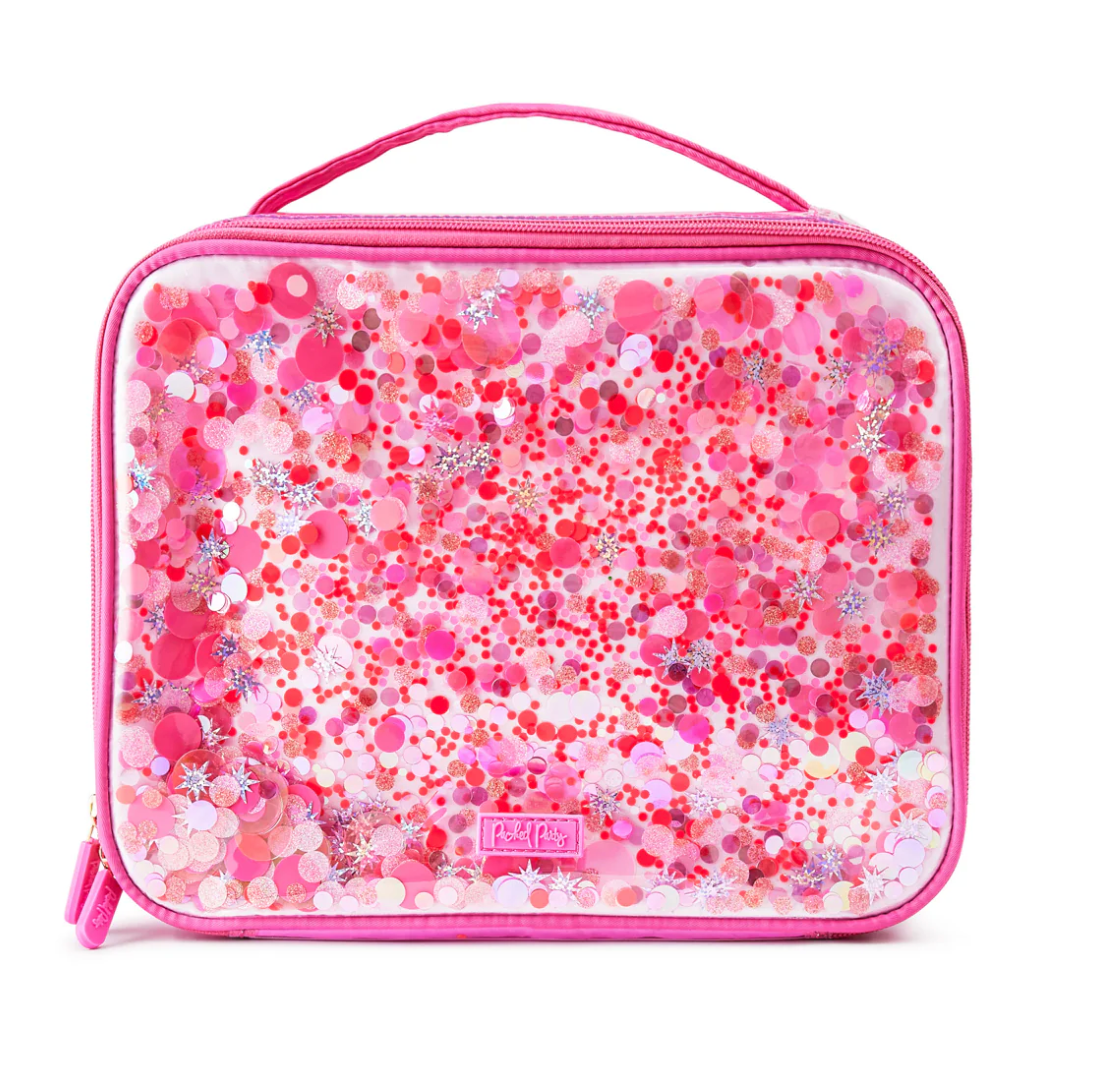 Make lunch a party thanks to this insulated confetti lunchbox we designed! Packed with our Sweet Tart confetti mix in bright pinks and with holographic details too, this is the ideal lunch bag for school, work, or hey, just a picnic. This is the perfect sized lunchbox to hold snacks, sandwiches, salads, you-name-it, plus a beverage too. Pair it with our Sweet Treat confetti backpack for the ultimate back to school look that's sure to turn heads!