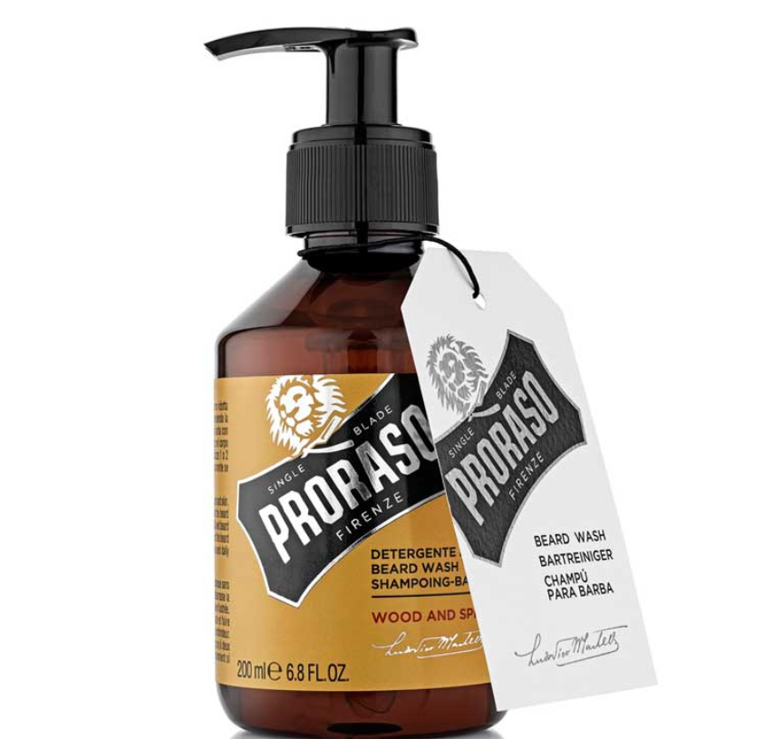 Proraso’s Single Blade Collection Wood and Spice Beard Wash is a gentle, yet effective low-foaming cleanser for both beard and skin.