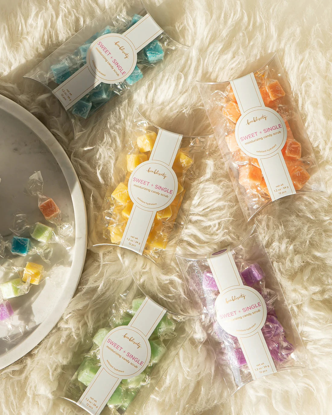 The perfect quick grab for self care anywhere with Moisturizing Candy Scrub. Available in five different scents!