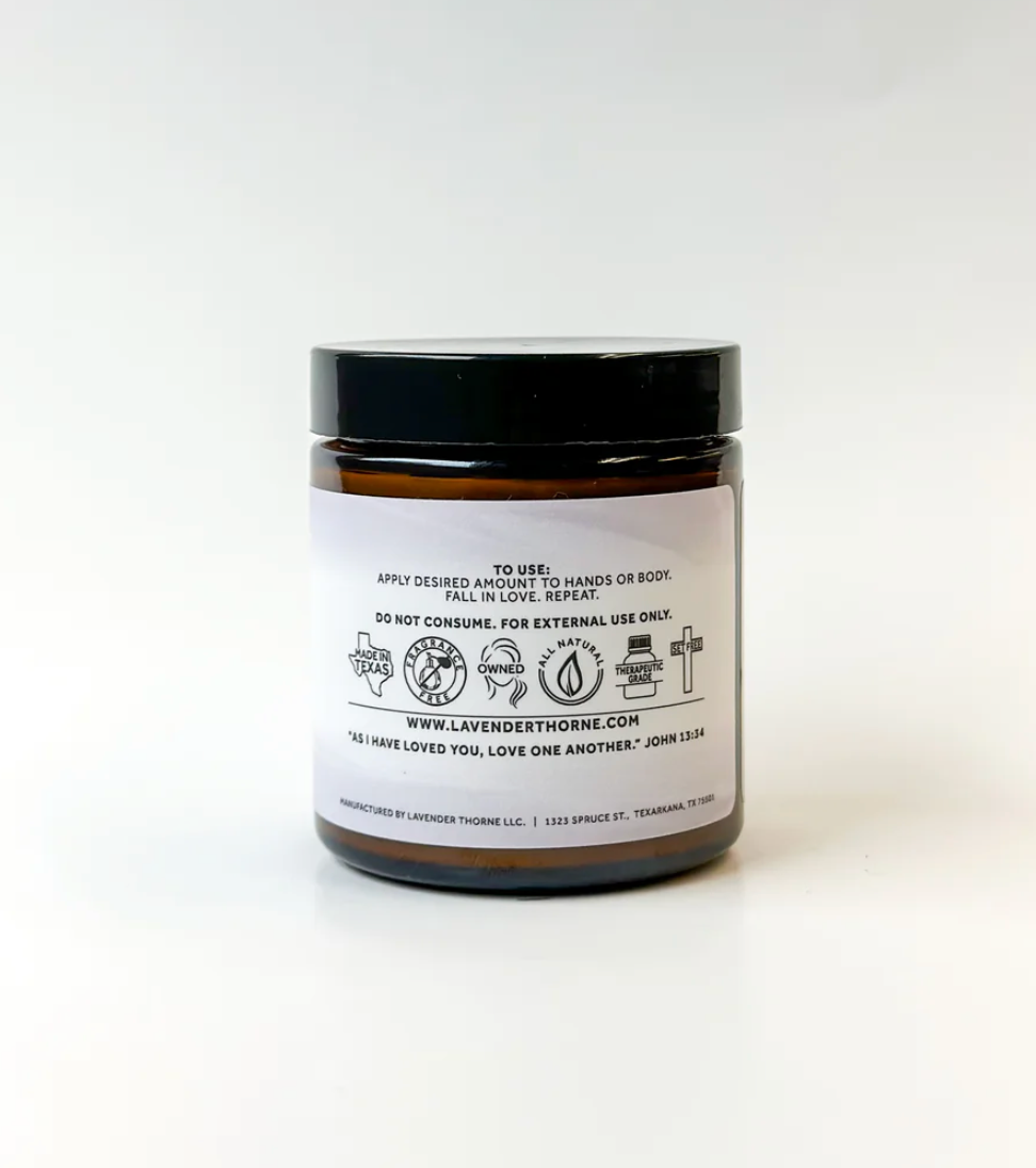 Organic Raw Shea Butter, Organic Arrowroot Powder, Organic Raw Coco-Butter, Organic Jojoba Oil, Organic Vanilla Therapeutic grade essential oils