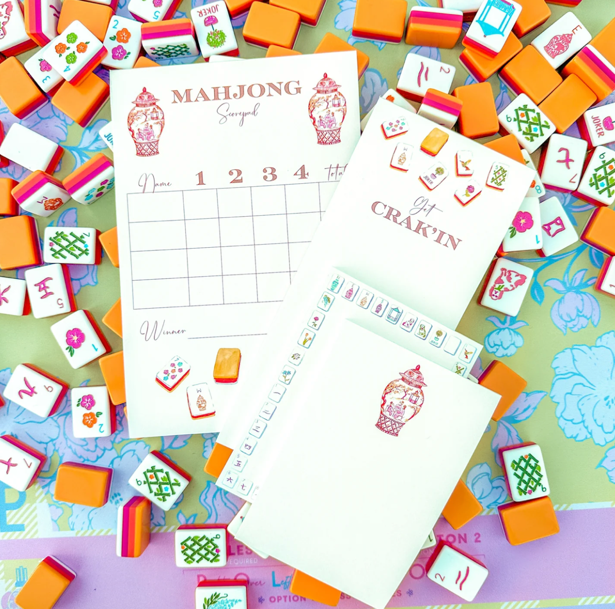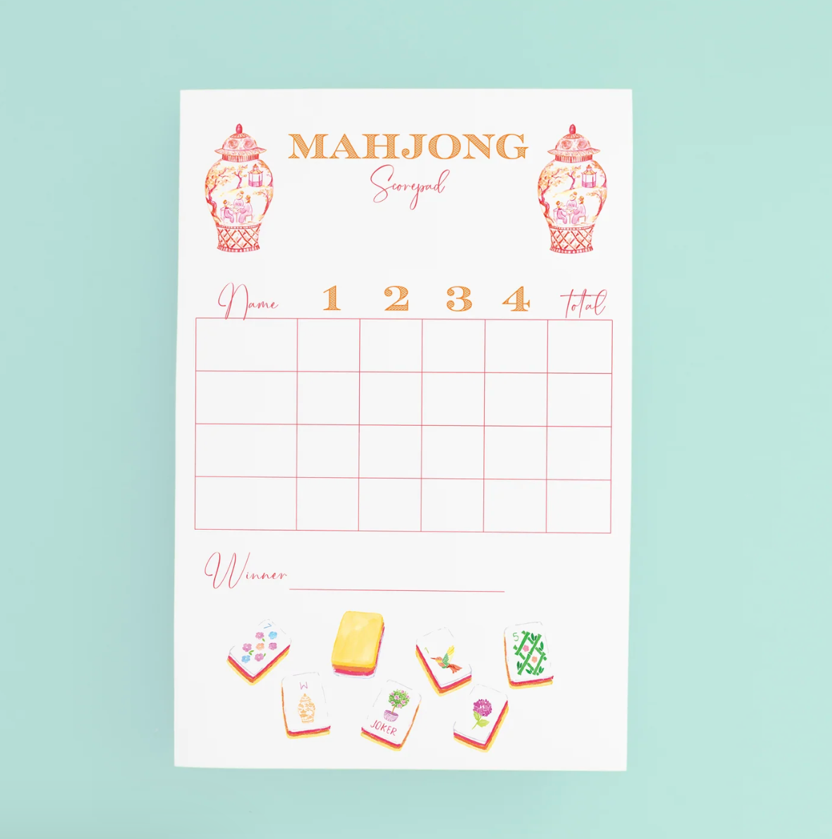 Keep score with our stunning mahjong scorecards! These scorecards match our Sunset Tiles collab with Oh My Mahjong. Write a fun little note on the back to commemoratethe fun time had playing mahjong with your besties.