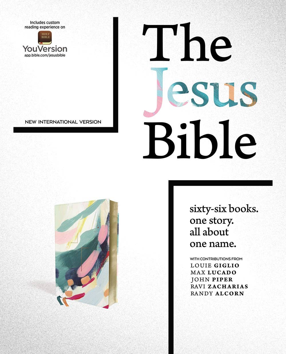 Sixty-Six Books. One Story. All About One Name. Encounter the living Jesus in all of Scripture. From the Passion movement, The Jesus Bible, NIV Edition, lifts Jesus up as the lead story of the Bible and encourages you to faithfully follow him as you participate in his story. Profound yet accessible study features help you meet Jesus throughout Scripture. See him in every book so that you may know him more intimately, love him more passionately, and walk with him more faithfully. This edition has been set in the exclusive Zondervan NIV Comfort Print® typeface, increasing readability without sacrificing portability. Expertly designed specifically to be used for the New International Version (NIV) text, Comfort Print offers an easier reading experience that complements the most widely read modern-English Bible translation. Features: Complete text of the accurate, readable, and clear New International Version (NIV) Introduction by Louie Giglio 66 book introductions highlight the story of Jesus in every book