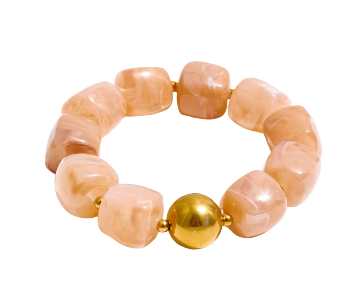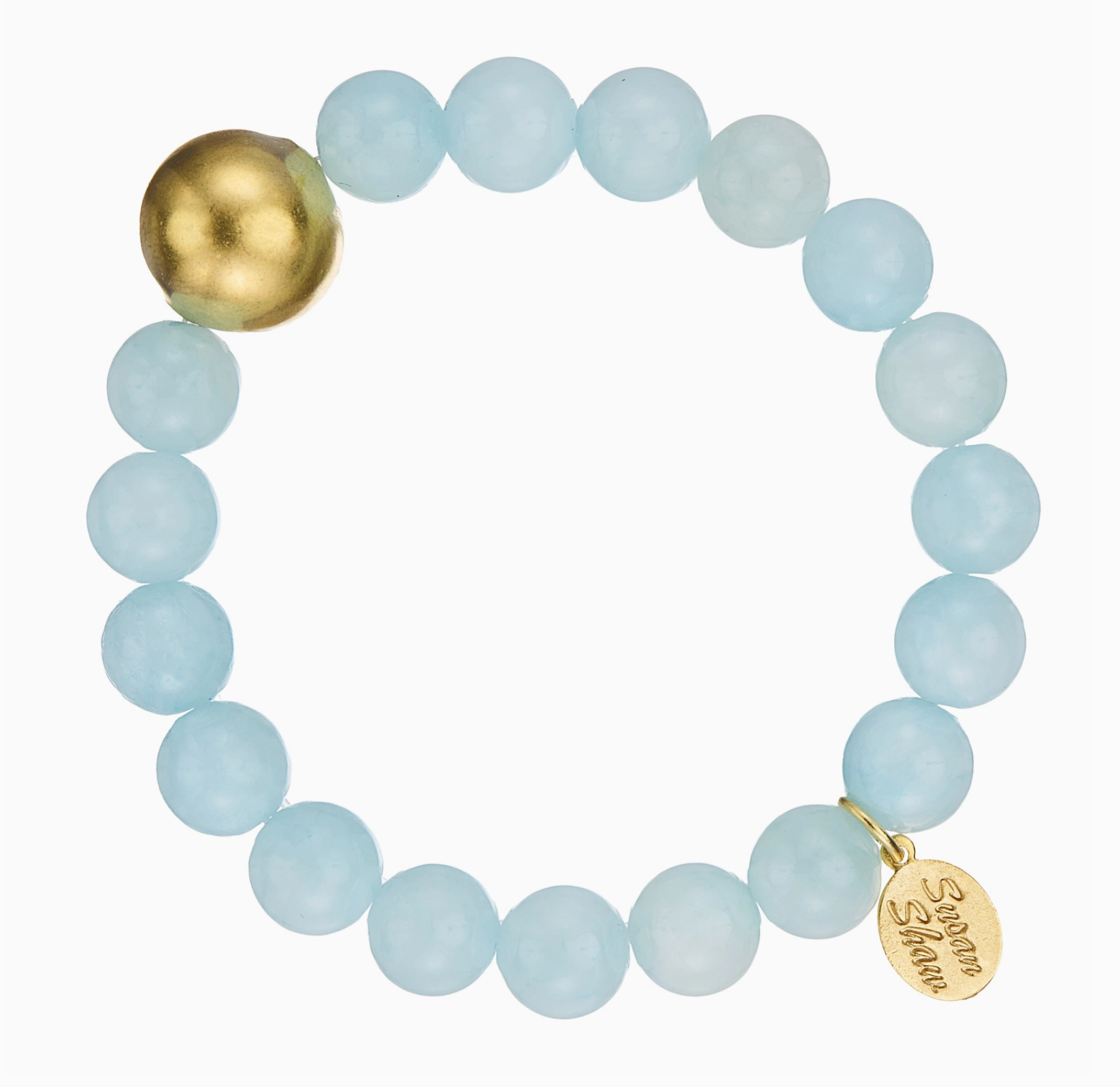 Susan Shaw: Gold Beads & Light Blue Jade Stretch Bracelet