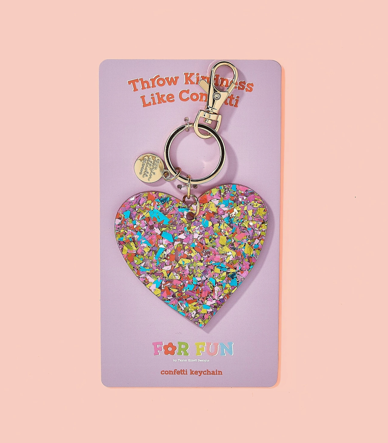 Details * Heart size: 3” x 3” * Backer card size: 3.6" x 6.7" * Gold metal keyring * Pink + colorful confetti mix