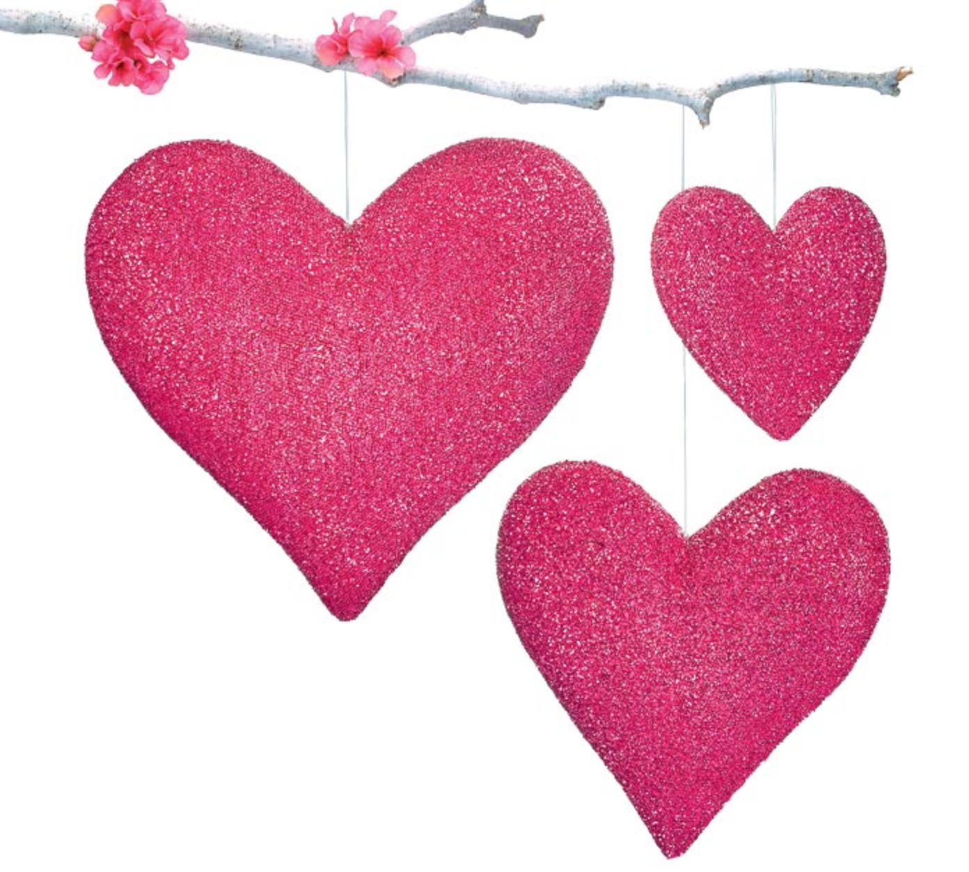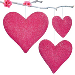 Berry color foam hanging heart assortment. Clear loops for hanging included.