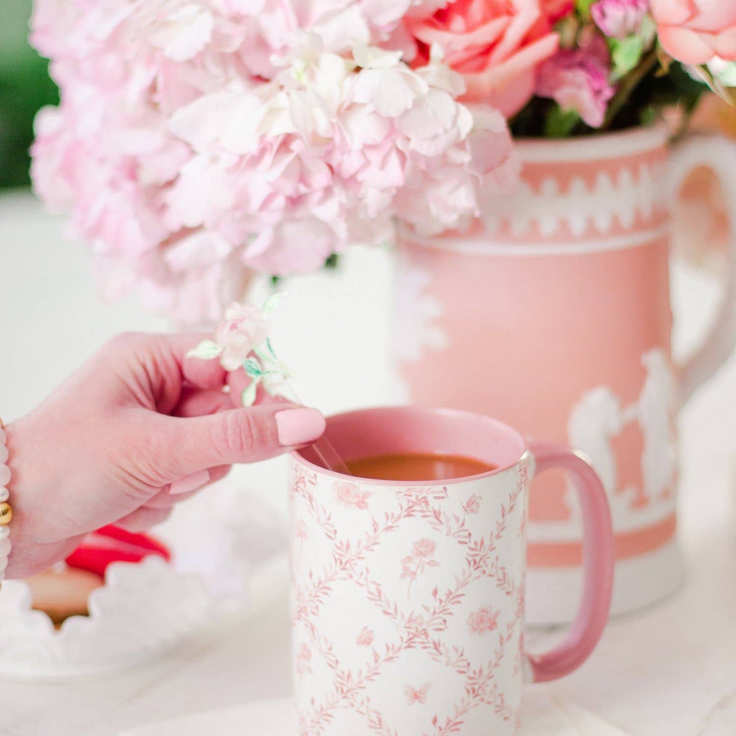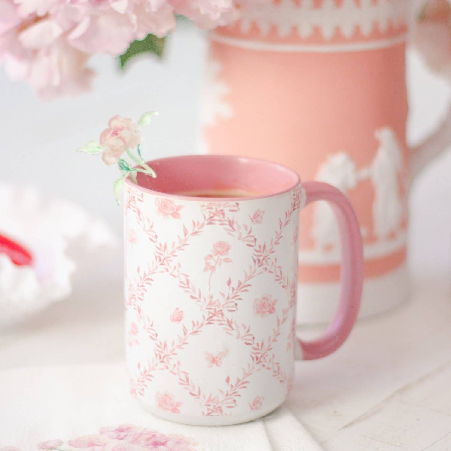Pink Rosebud Trellis 15oz Tall Watercolor Mug