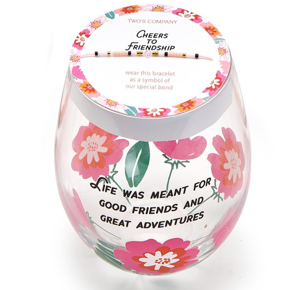 Friendship stemless wine glass with wish bracelet
