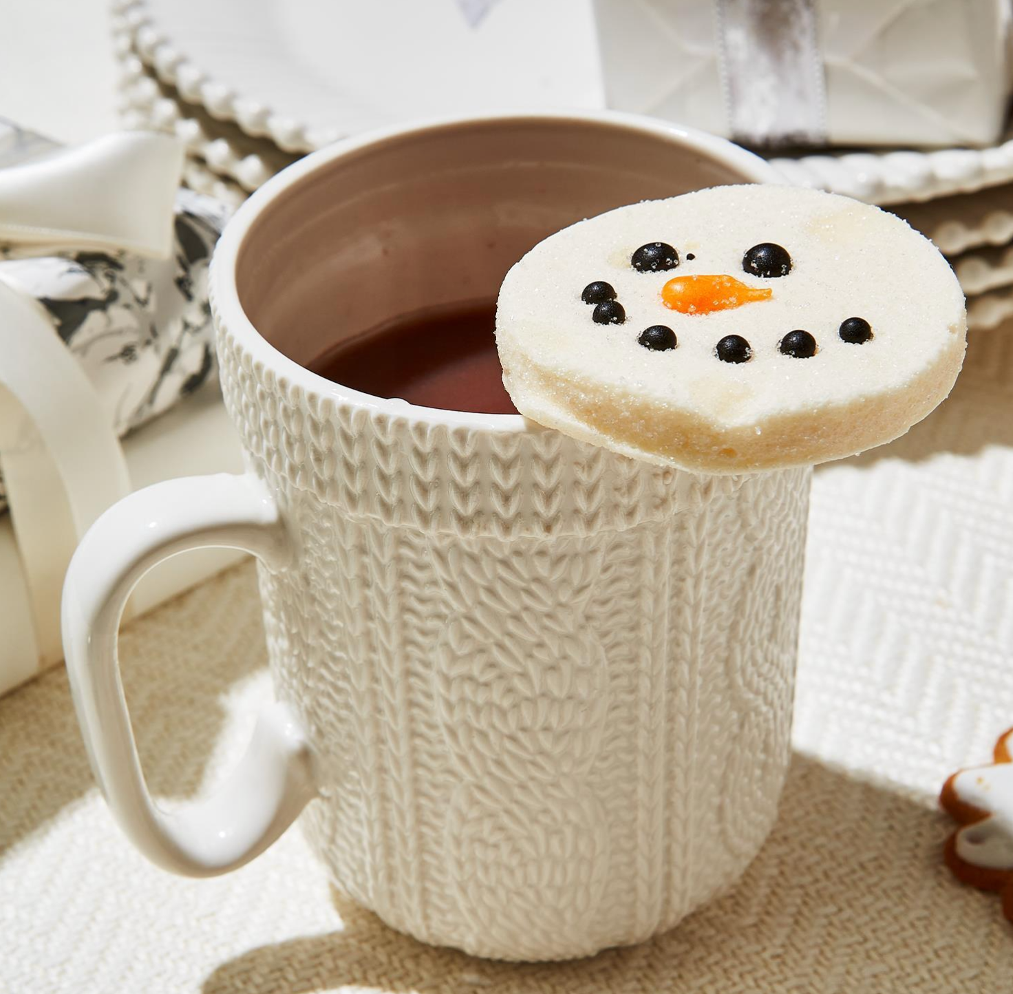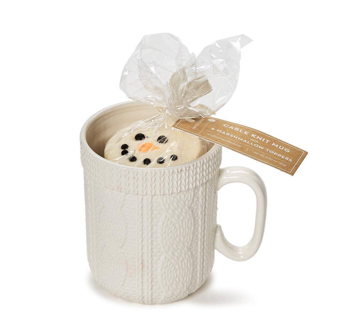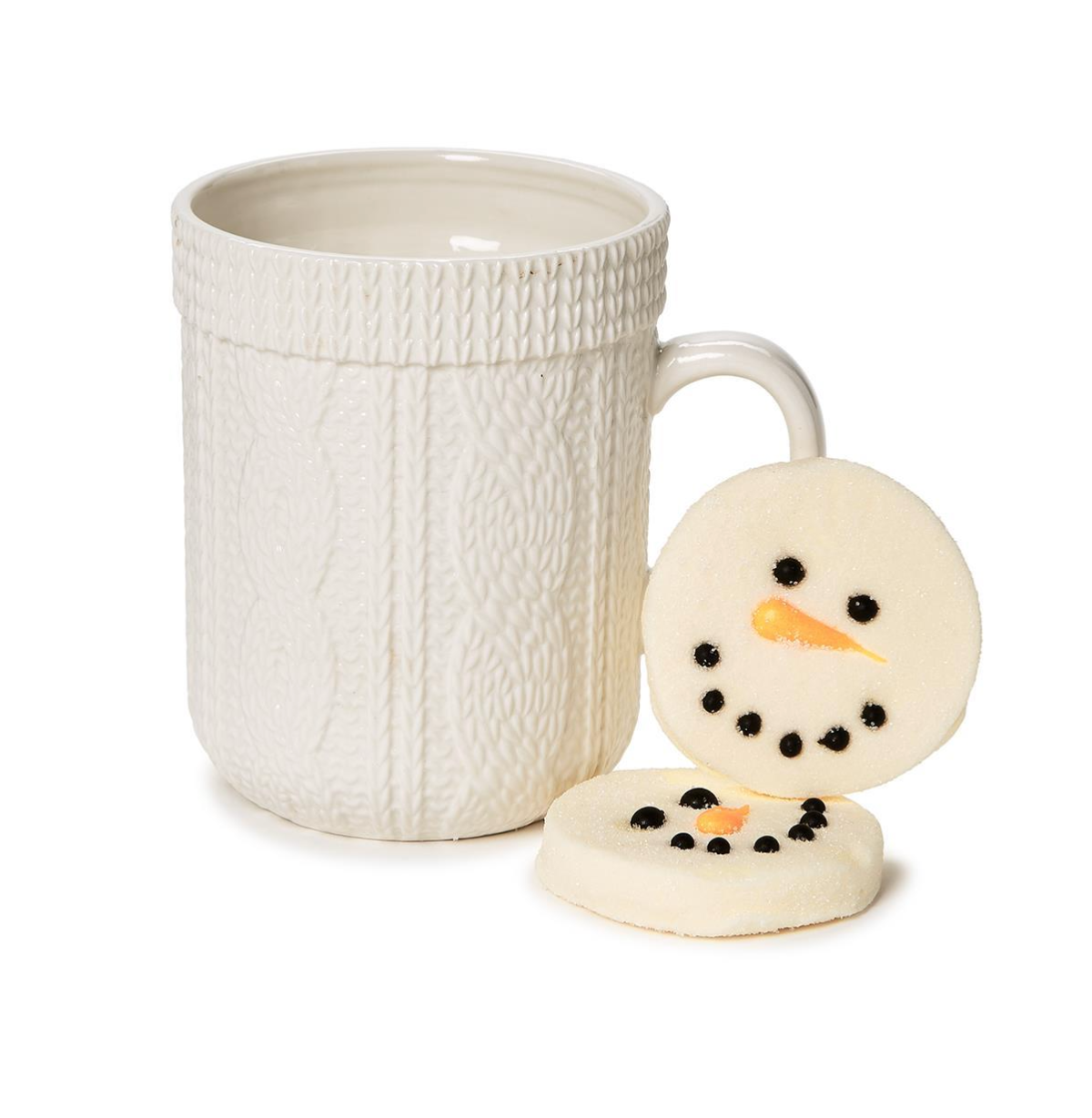 Cable Knit Pattern Mug w/ Snowman Marshmallow Toppers