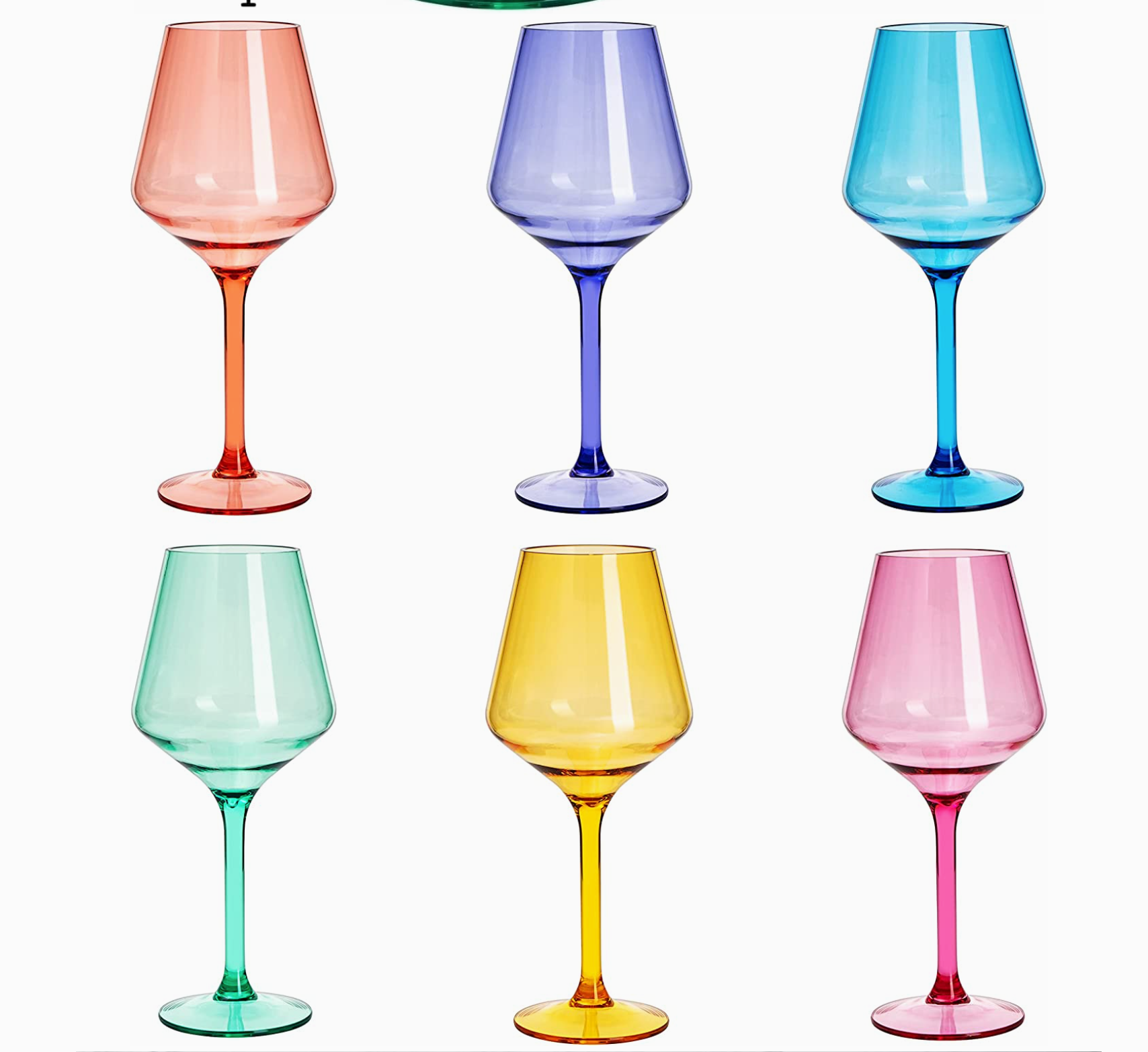 Colored Acrylic Stemmed Wine Glass (Set of 6)