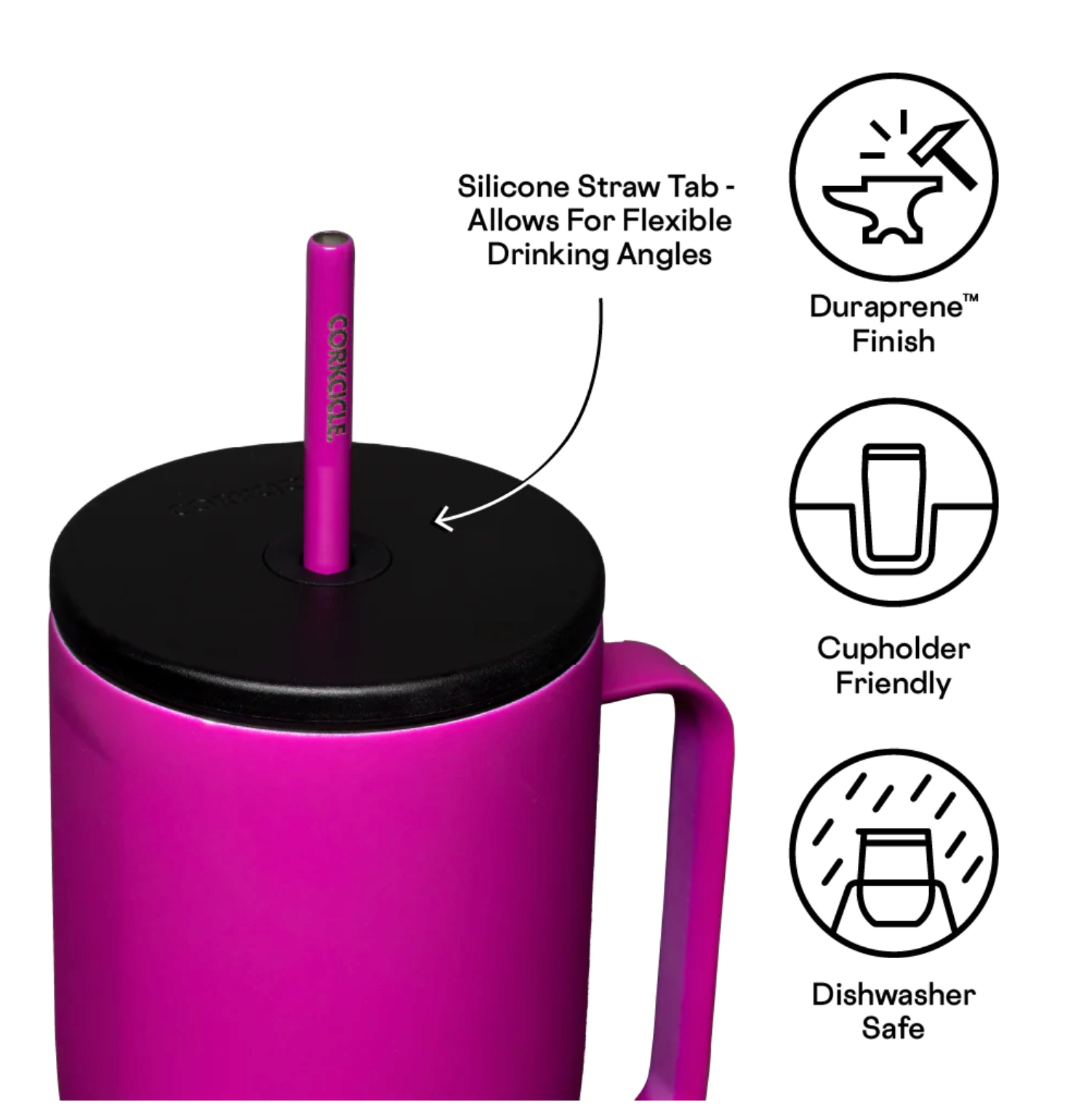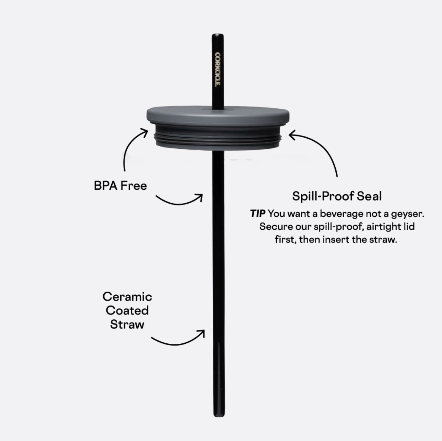 • Silicone Straw Tab- allows for flexible drinking angles