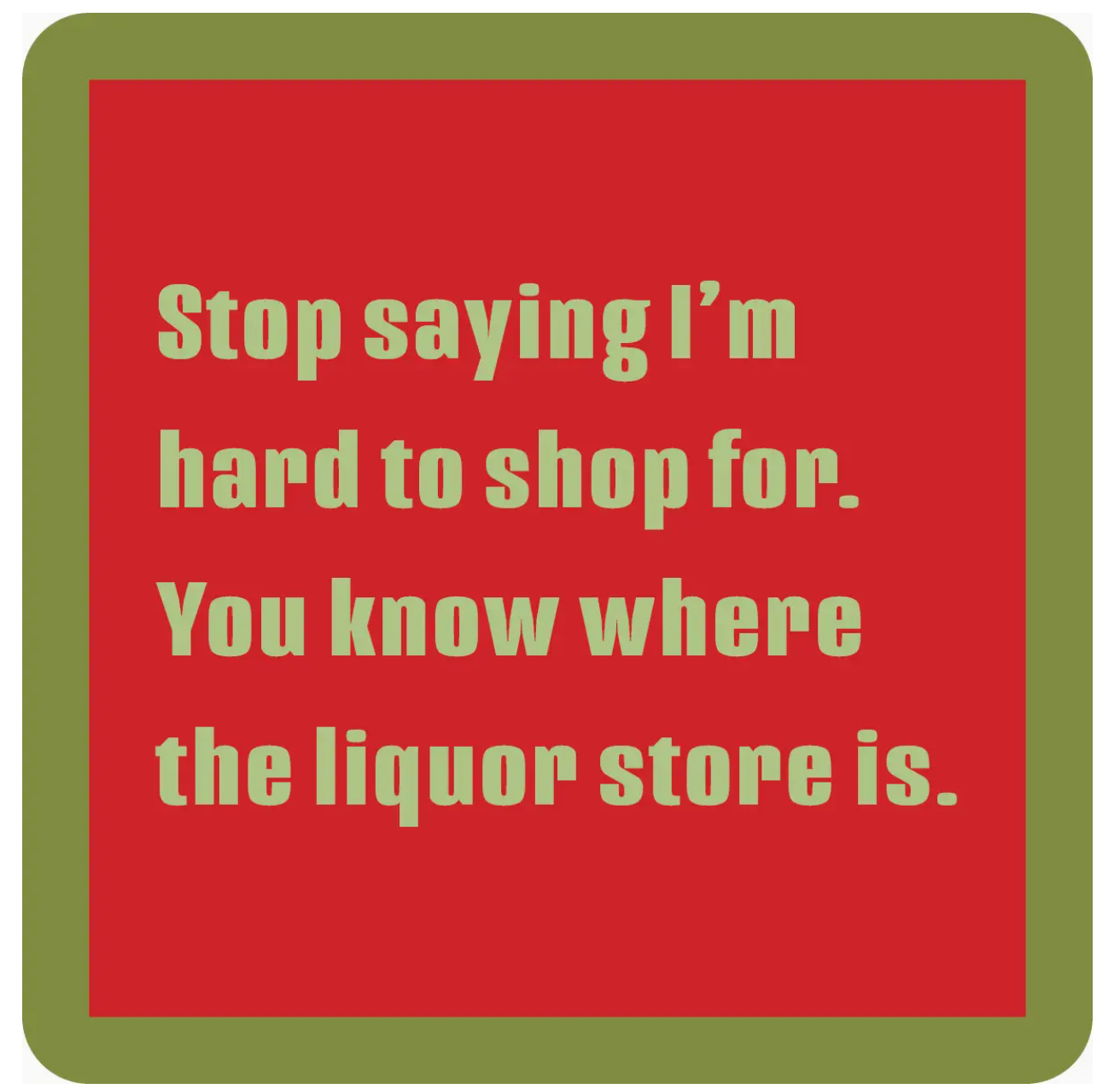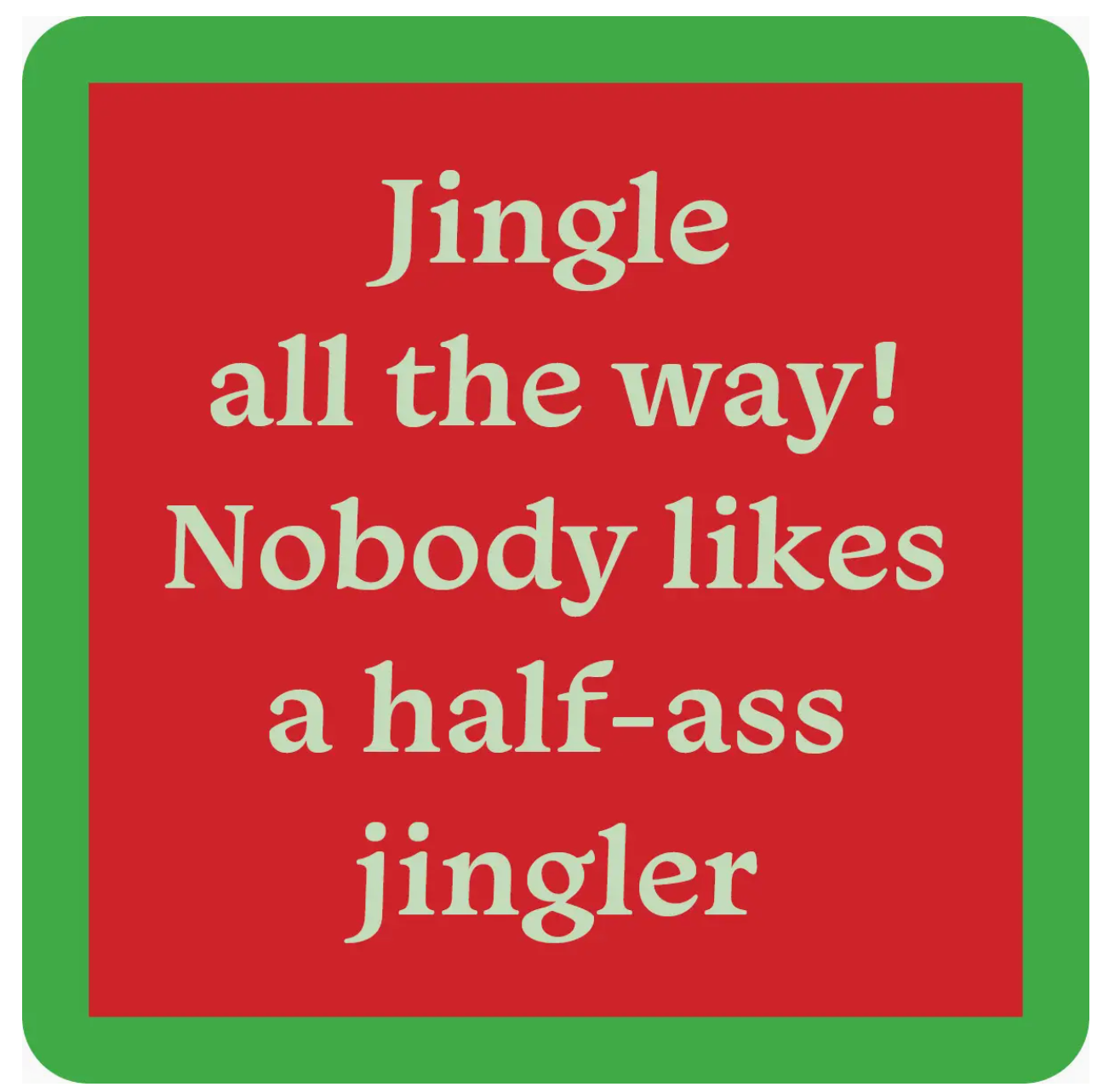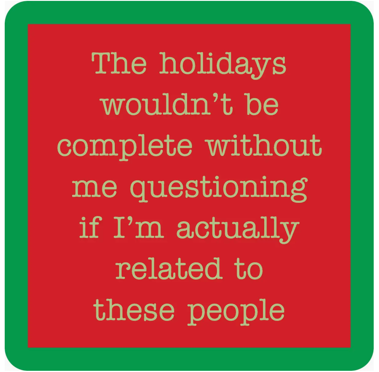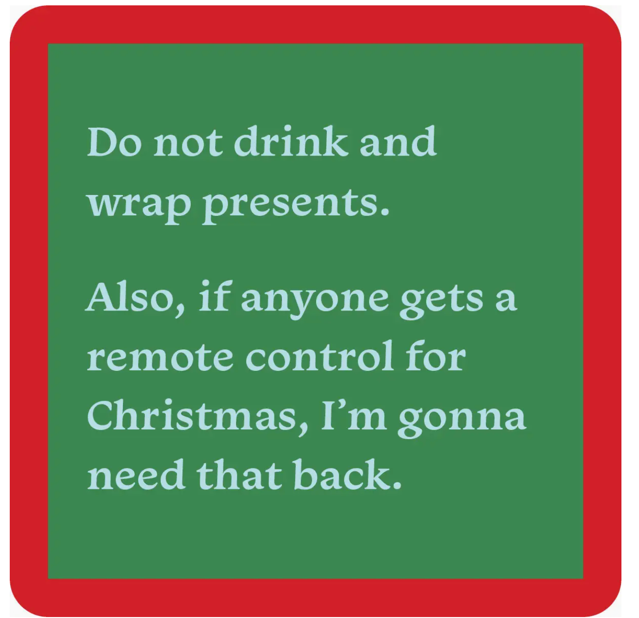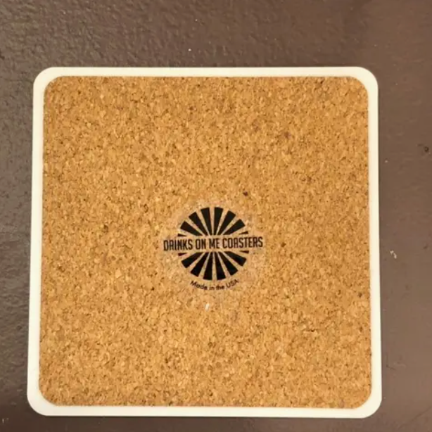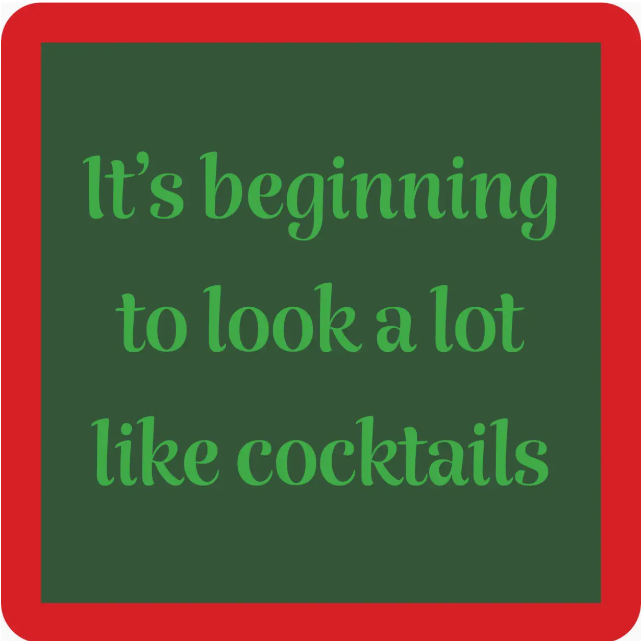 Holiday Coaster "Cocktails" Coasters are 4”x 4” resin with cork backing and round corners. Made in the USA.