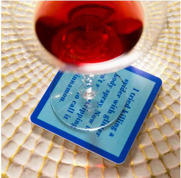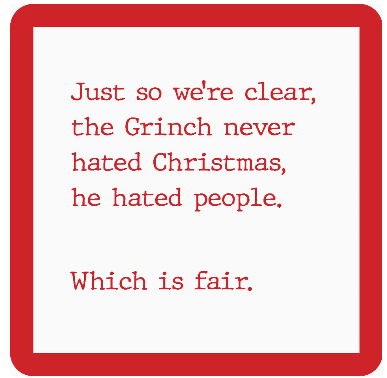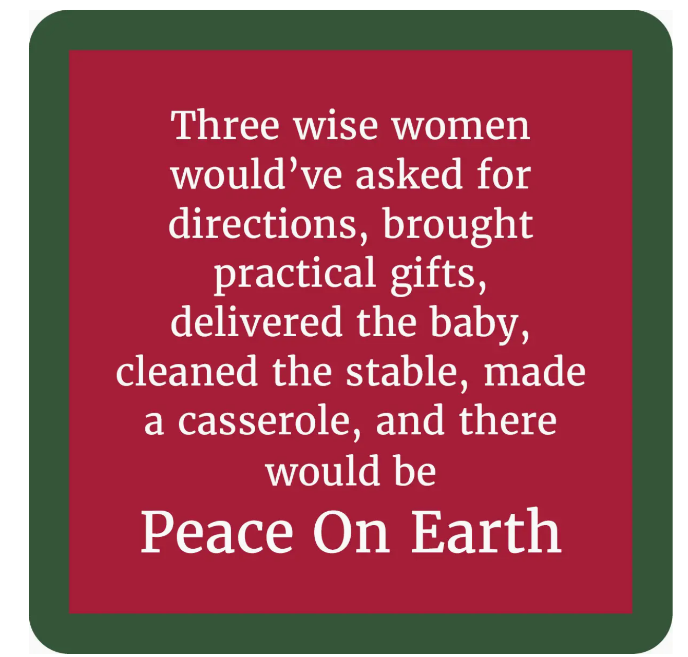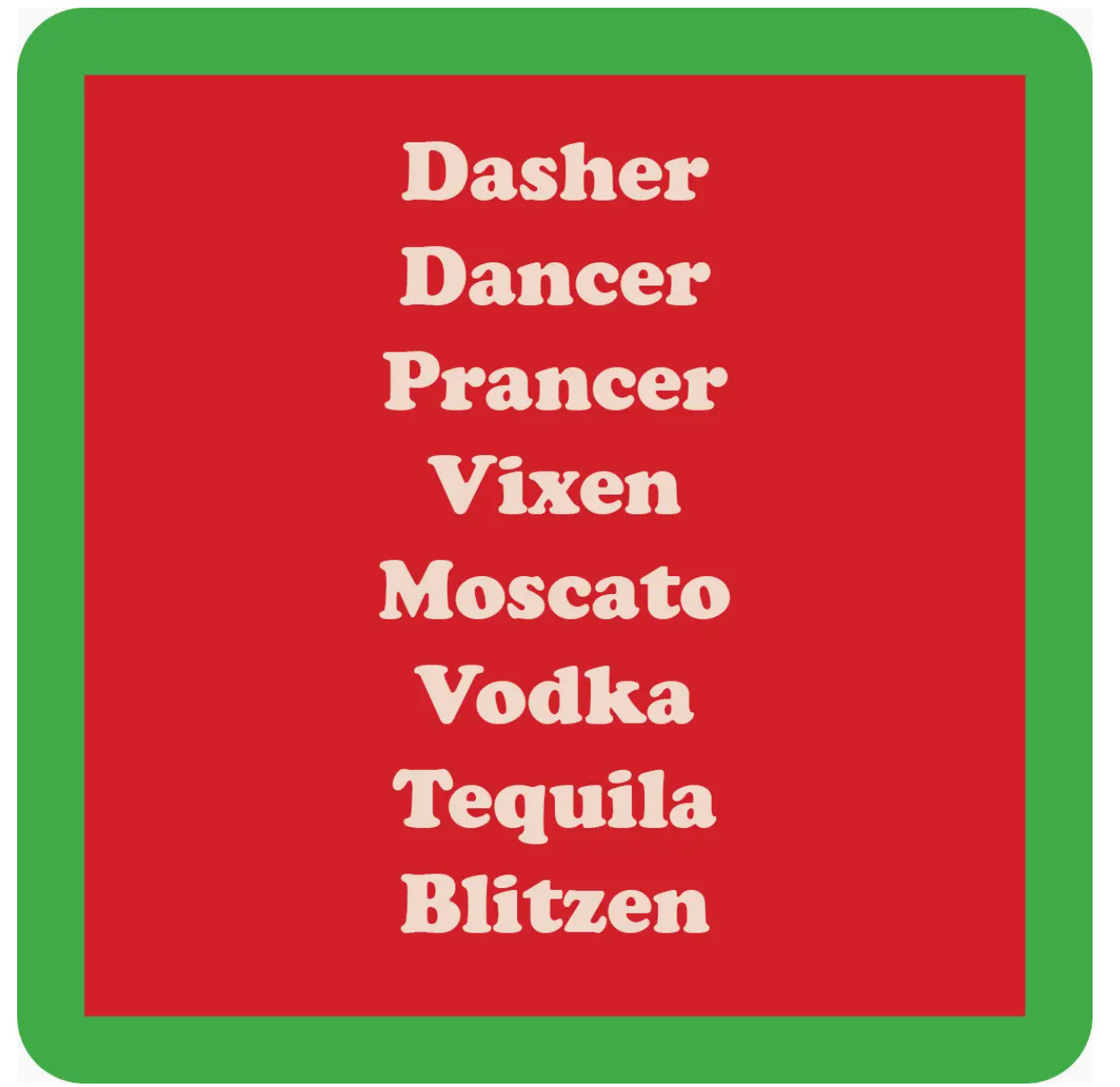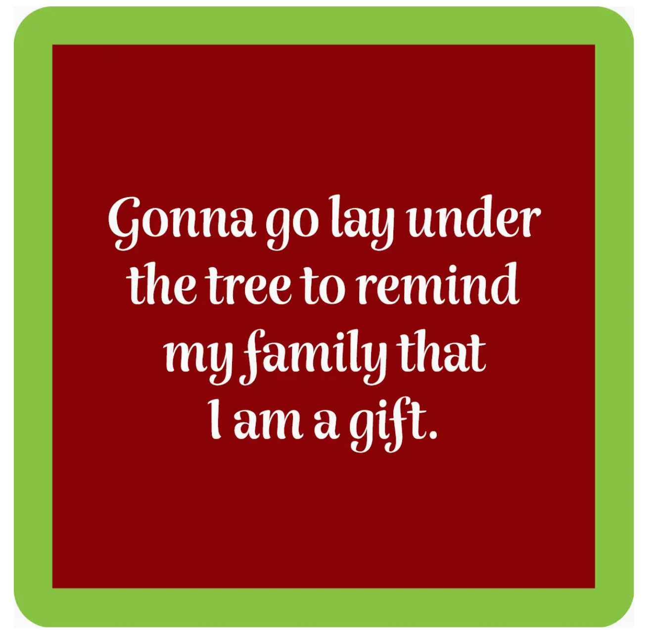Holiday Coaster "Cocktails" Coasters are 4”x 4” resin with cork backing and round corners. Made in the USA.