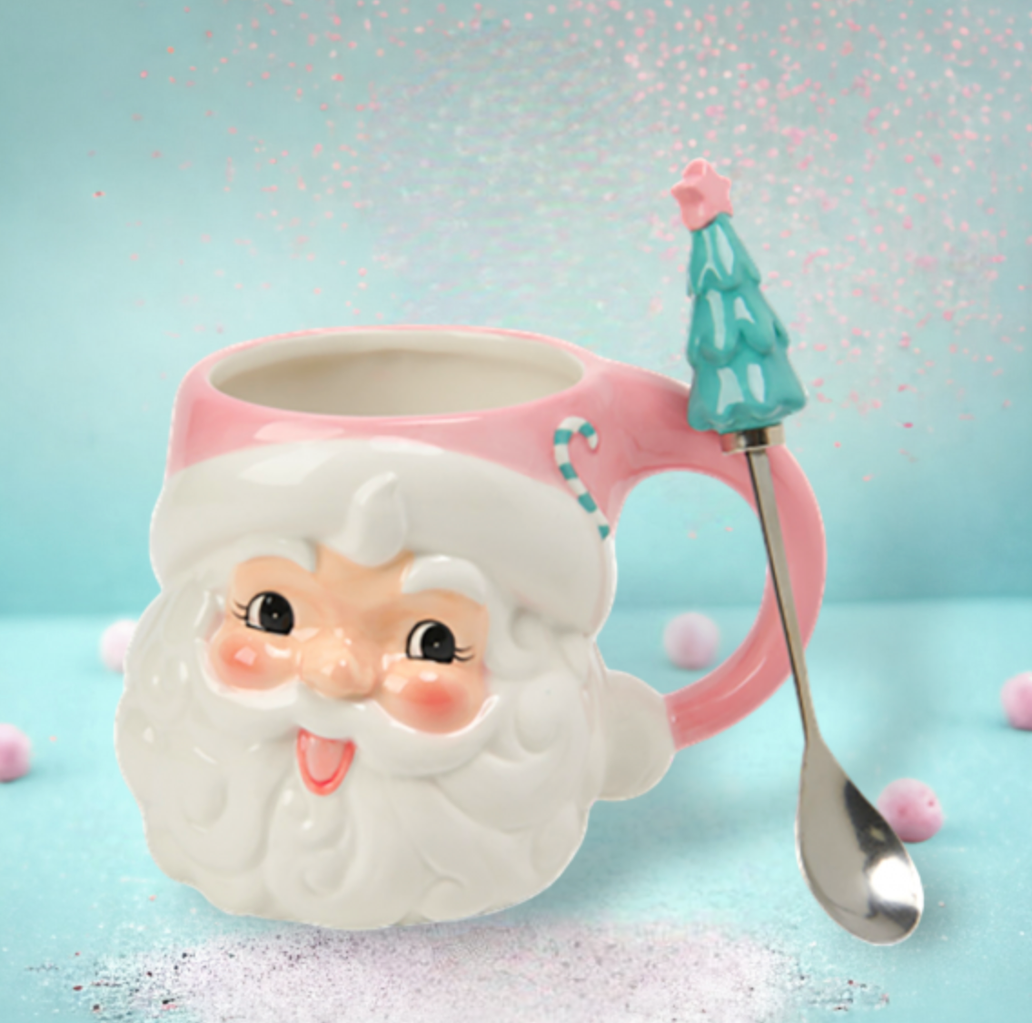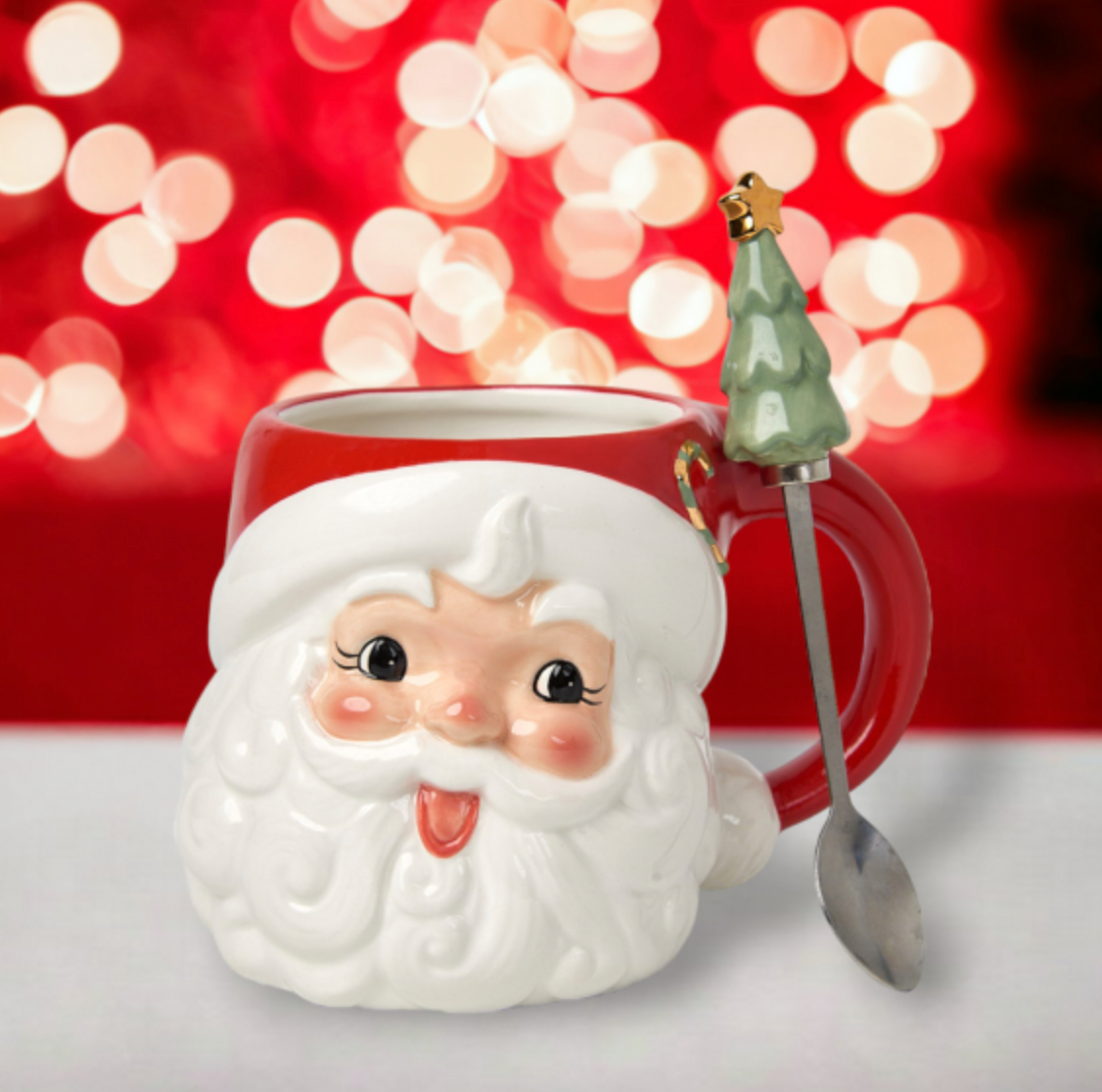 SANTA MUG JOY: The North Pole Sweet Shoppe Santa Head Mug is a delightful addition to your holiday drinkware, perfect for enjoying your favorite warm beverages.