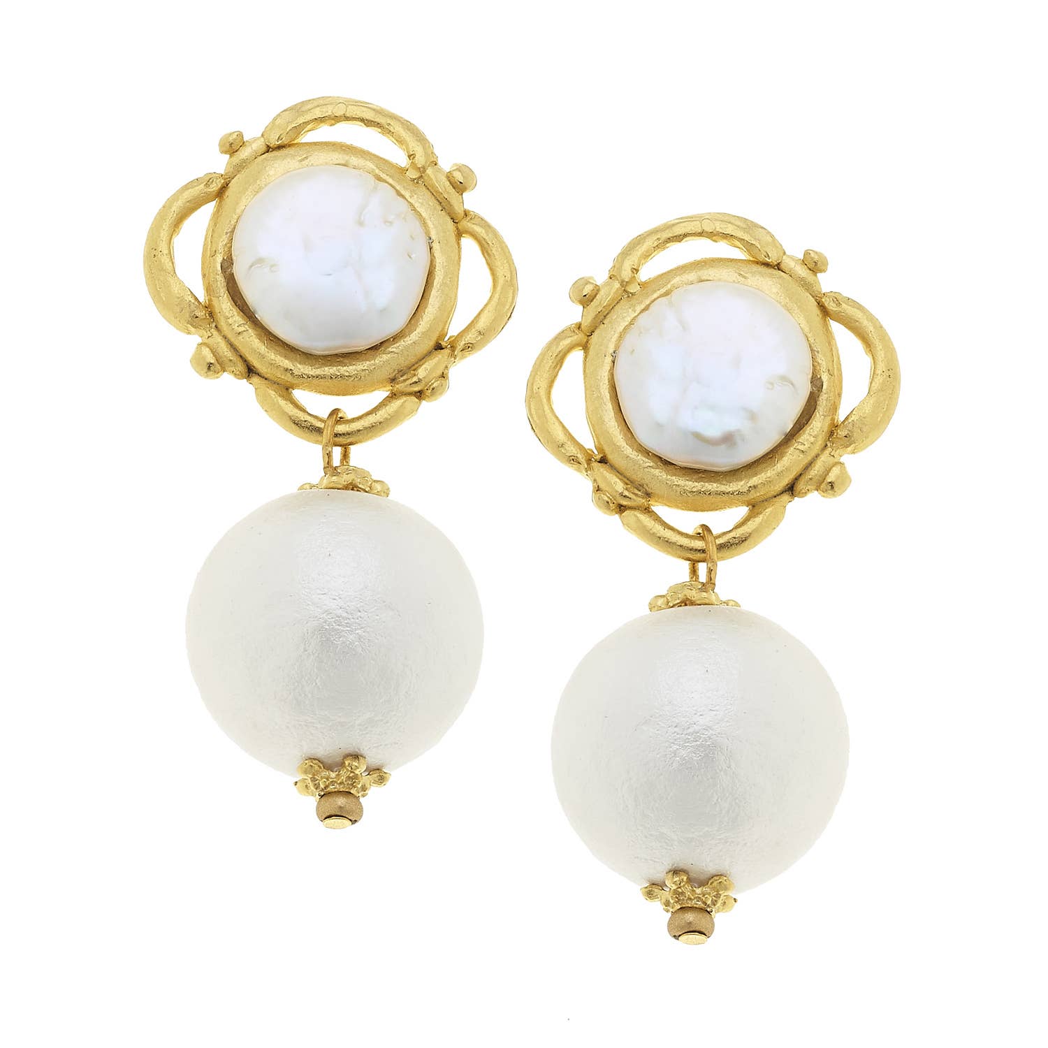 Susan Shaw: Gold with Pearl and Cotton Pearl Clip Earrings