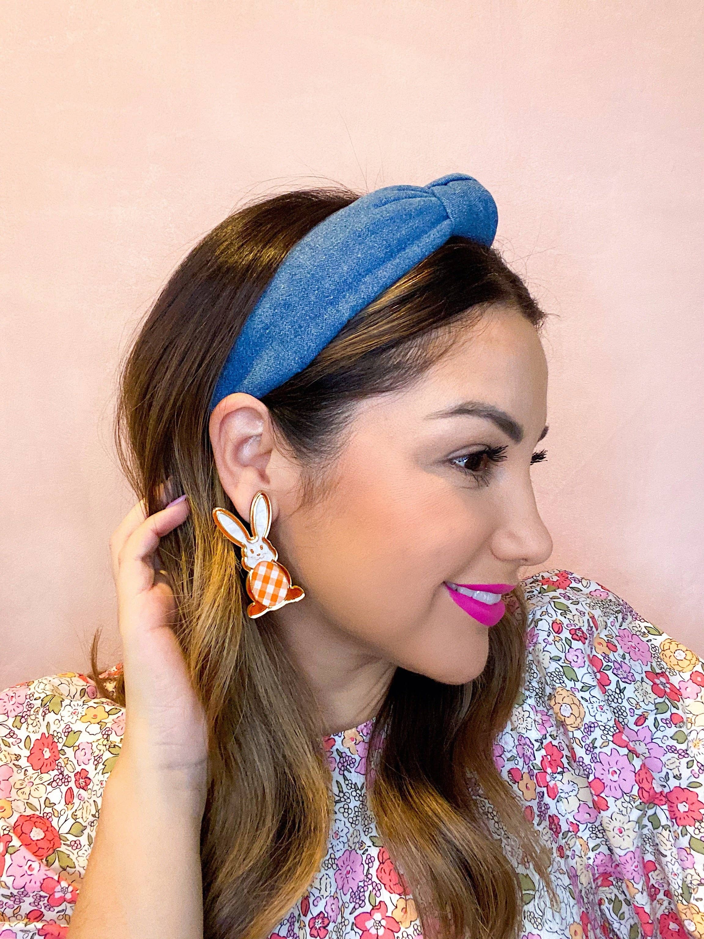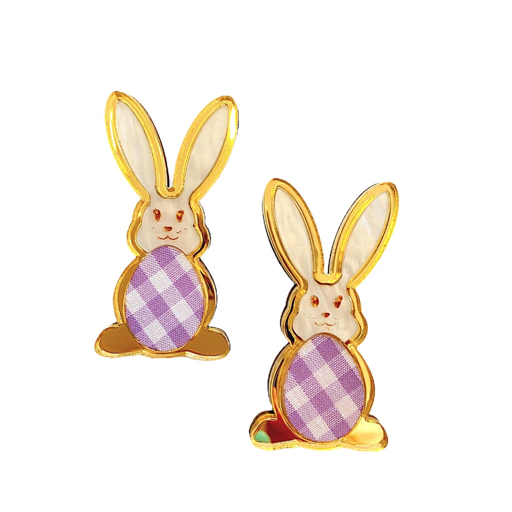 Frances Lilac Gingham Easter Bunny Stud Earrings