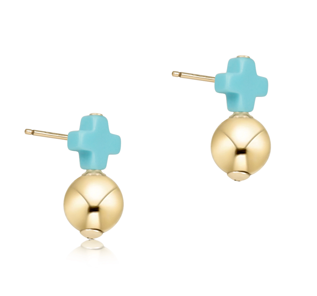Meet our 14k gold-filled gemstone signature cross studs.