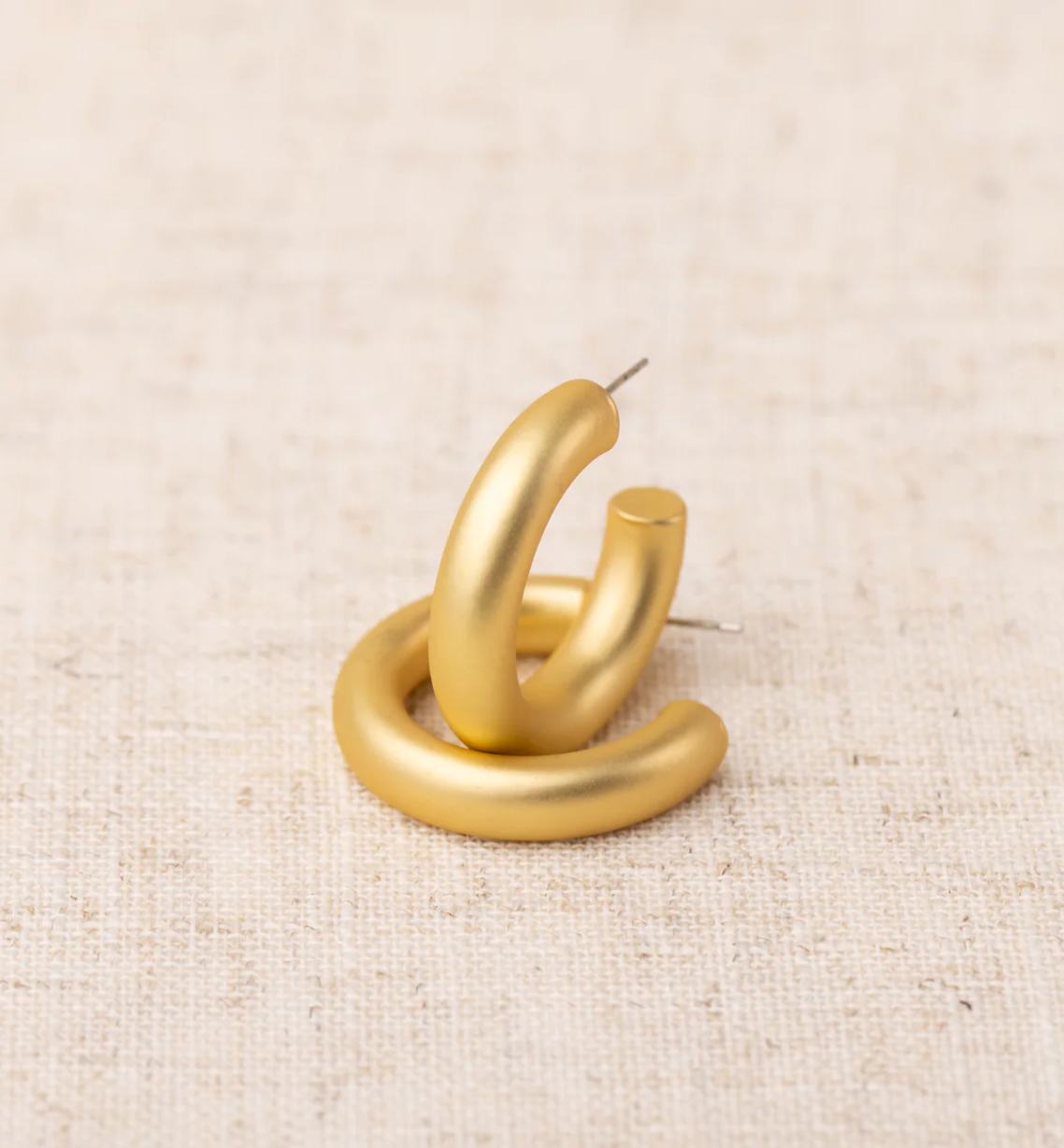 Introducing the Cameron Earrings, the newest addition to our everyday hoop collection. Available in gold and silver and brushed or shiny finish.