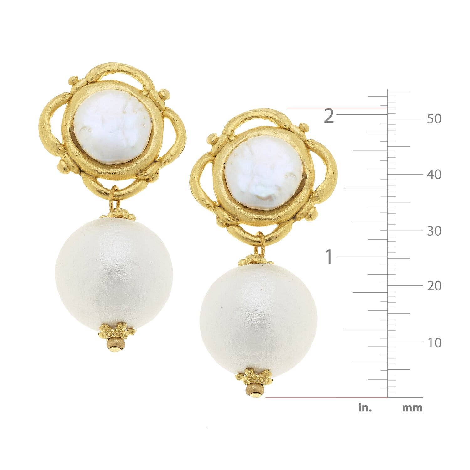 Susan Shaw: Gold with Pearl and Cotton Pearl Clip Earrings