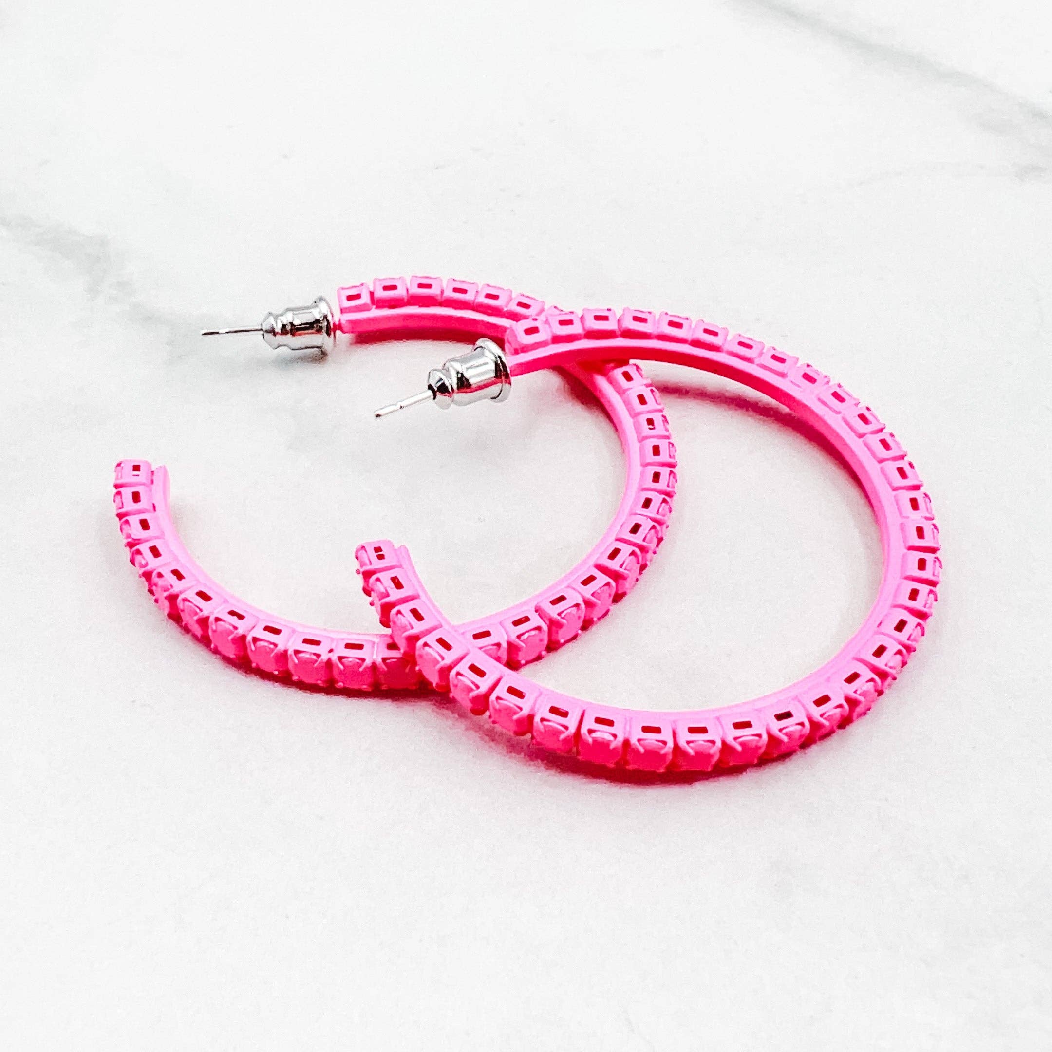 Barbie Neon Pink Hoops are a stylish statement piece that can add a pop of color to any look. Expertly crafted in Barbiecore pink, these hot pink hoop earrings make any outfit shine.