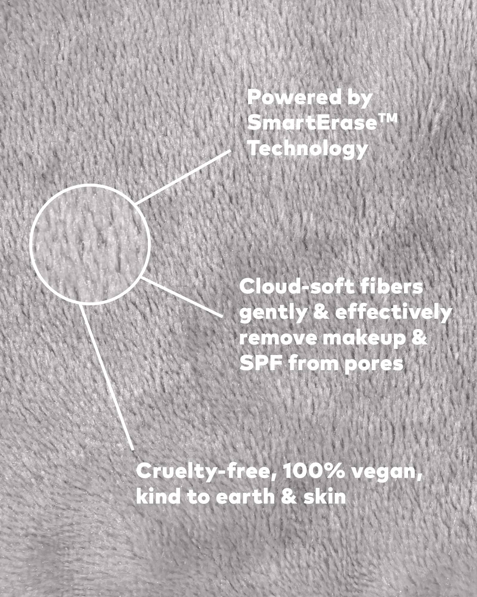 Includes 7 daily cloths, 5in x 4in. + laundry bag Erase all makeup with JUST WATER™ including waterproof. Our patented, water-activated makeup remover uses cloud-soft fibers to gently & easily remove all cosmetics & sunscreen from pores. 2 in 1 benefit: one side removes makeup & one side exfoliates. ✓ Dermatologist Recommended ✓ SmartErase™ Technology ✓ Reusable & machine washable (300X) ✓ Great for everyday & professional makeup removal ✓ Eco-friendly & simplified skincare The Original MakeUp Eraser® removes makeup 2.5X better than the leading makeup wipe is non-irritating & non-drying, making it perfect for sensitive skin. It's safe for eyelash extensions & oil-free, perfecting your sustainable beauty routine. Wet cloth with warm water. Use gentle circular motions to erase makeup & flip to the other side to exfoliate the skin Machine wash & dry. Dryer sheet & fabric softener safe. Machine wash before first use. Gift, Pharmacy, Spa, Facial, Tan, Travel, Self Care, Dance, Cheer, no waste, bride, TSA