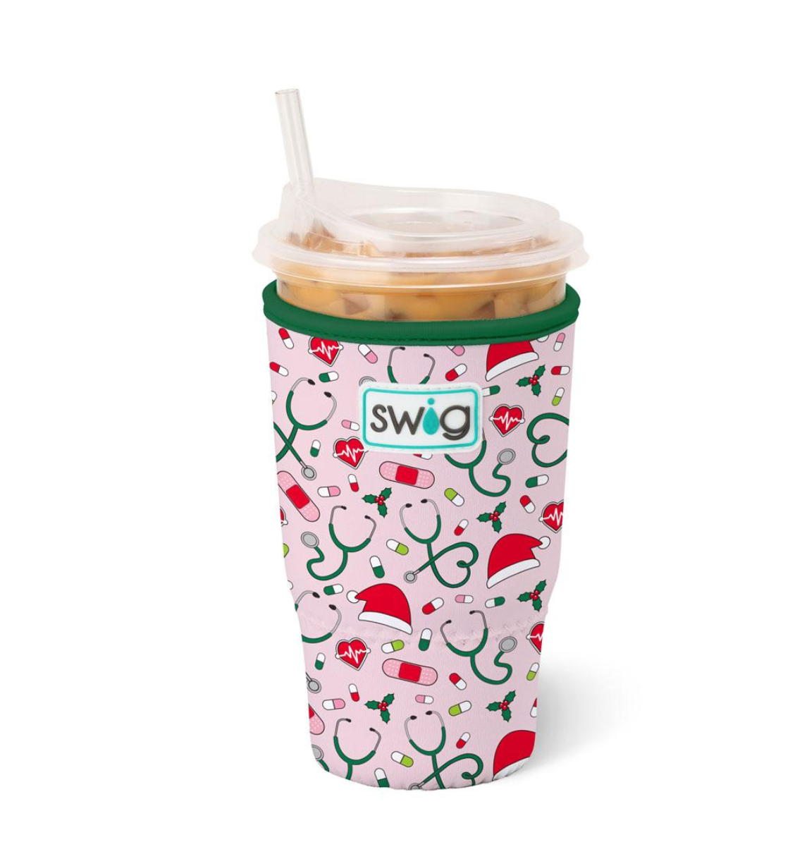 Cool drinks, dry hands! 🧊☕ Give the perfect gift for nurses on the nice list this year with a festive Christmas cheer design on a light pink background.