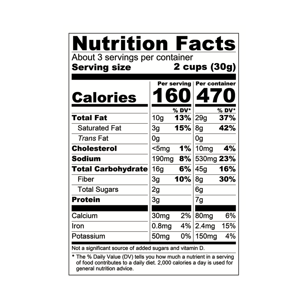 The snack that takes your taste buds on a lively adventure! Immerse yourself in the creamy, cheesy goodness that's infused with the warm embrace of chipotle, the spice of cumin, and the zingy kick of tangy lime. This popcorn party is not just a treat; it's a flavor fiesta that turns snack time into a celebration. Brace yourself for a symphony of deliciousness that'll have you doing the salsa with every crunchy bite! Ole! Savory products have a total shelf life of 180 days from the production date.