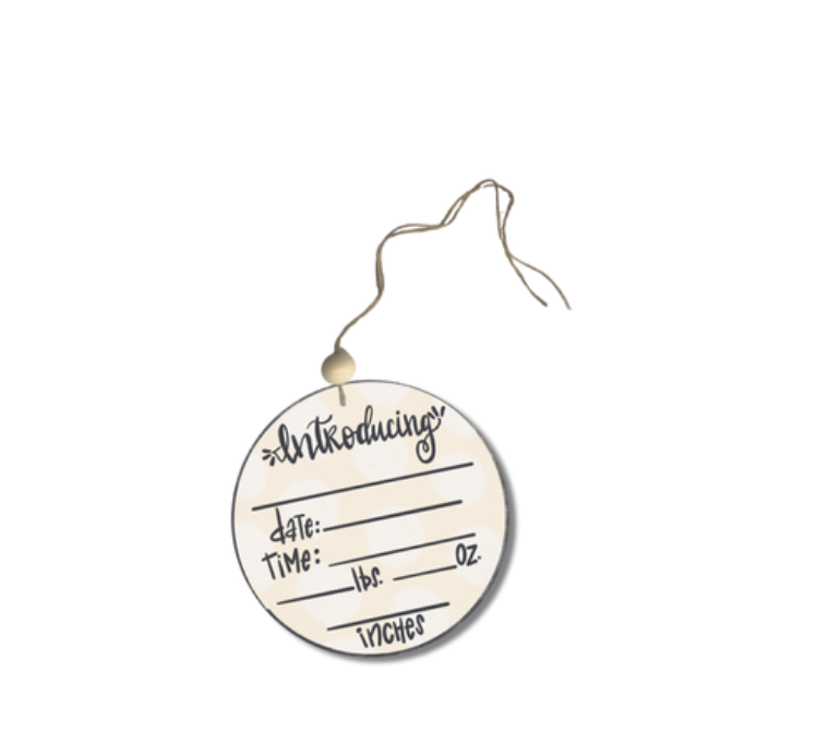 Make a statement with the Baby Name Introduction Circle Mini! This DK Mini is a charming wooden design featuring a customizable front with places for the baby's name and birth information.
