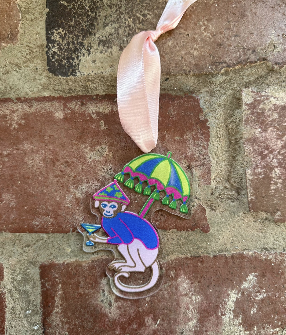 Playful, polished, and full of charm — this Chinoiserie-inspired acrylic ornament is sure to steal the spotlight. Featuring a colorful monkey with a vibrant parasol in hand, it’s a whimsical nod to timeless chinoiserie motifs with a modern Mahjong Moxie twist.