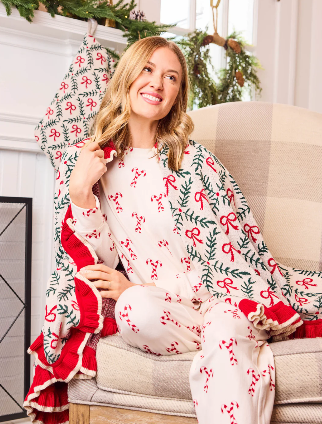 Elevate your holiday décor with our elegant Holiday Trellis Knit Blanket. Featuring a sophisticated trellis pattern woven in classic seasonal hues, this blanket adds a touch of refined warmth to any space. Perfect for wrapping up on chilly nights or layering your sofa with festive style, it’s an understated yet stunning way to celebrate the season.