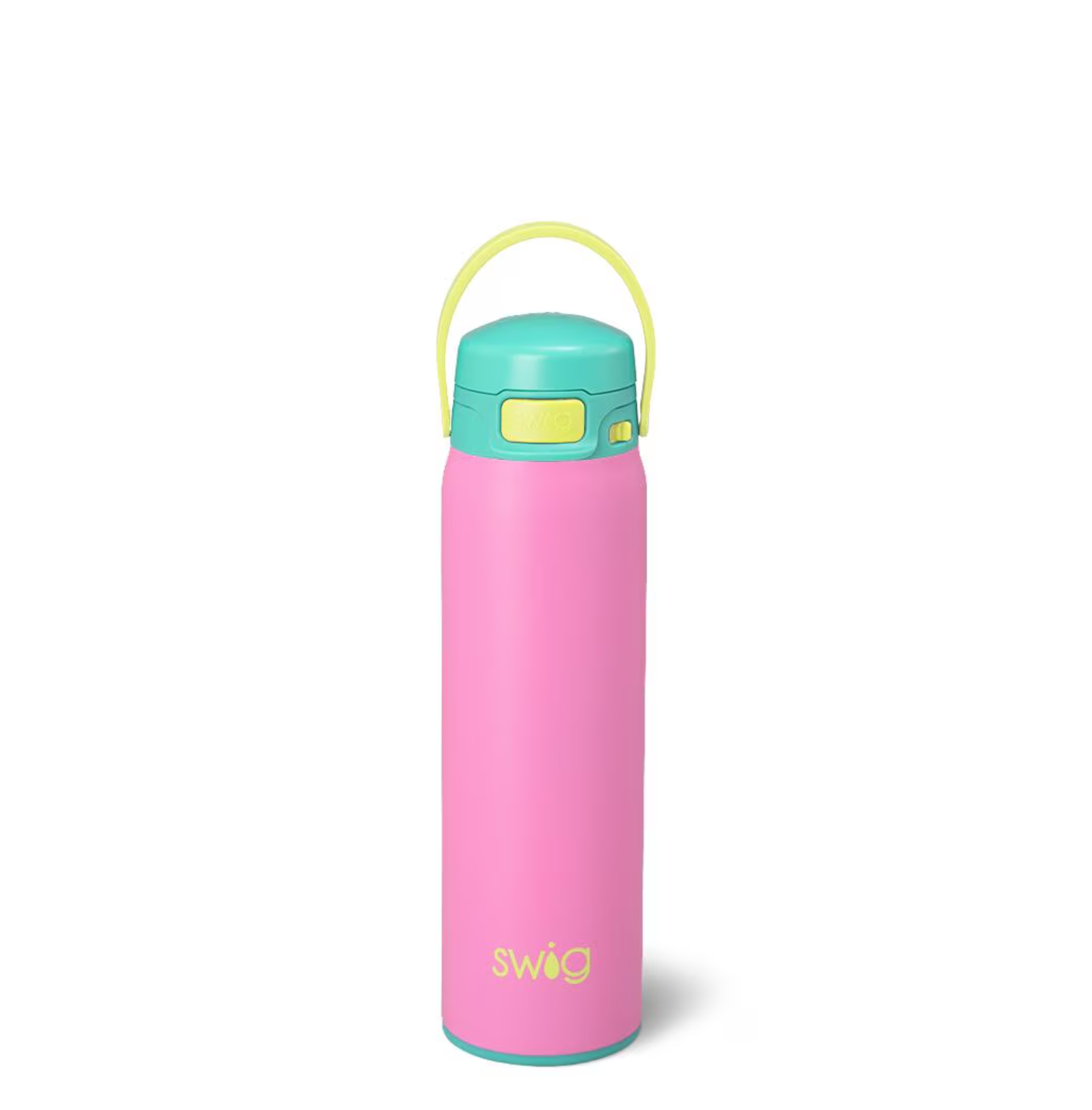 This innovative push-button cap with locking mechanism makes hydrating on the go leak free and worry free. Pop open the top to easily sip and flip open the cap to refill without the inconvenience of twisting it off. The innovative lid design gives you the option to sip freely or chug quickly. Grab-and-go flex handle is convenient for carrying on hikes and hooking in lockers.
