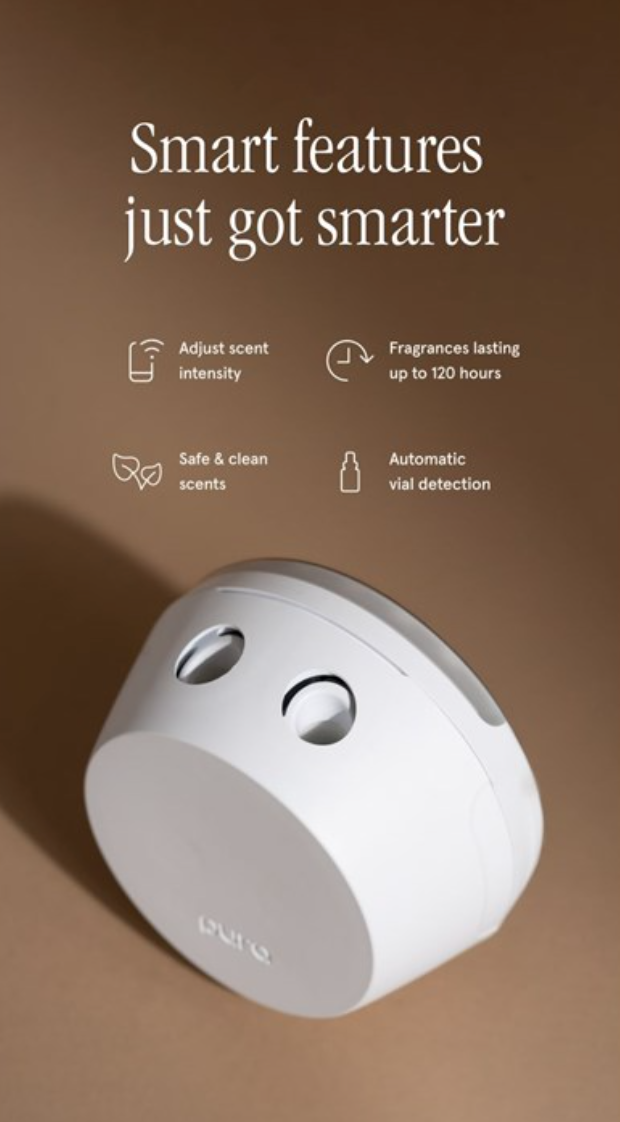The Pura Smart Fragrance Diffuser empowers you to personalize every detail of your home fragrance experience —all from your phone. Simply plug in, program, and let premium, clean fragrance enhance your every mood.