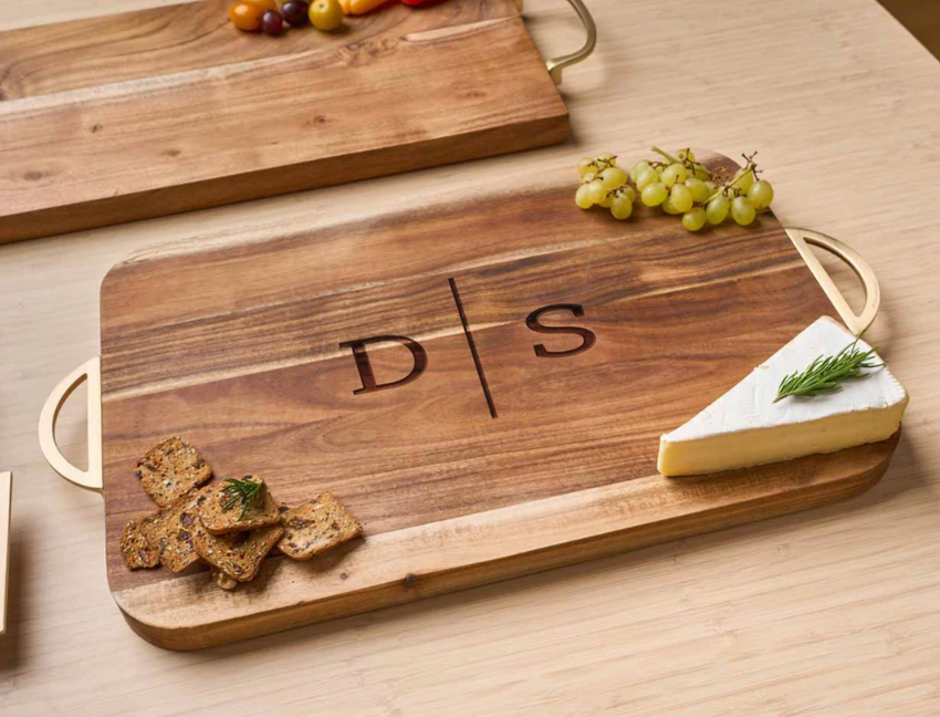 Premium acacia wood board in a sleek rectangle design with rounded corners!
